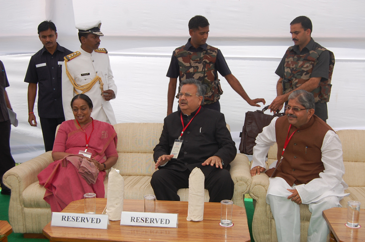 | विधानसभा परिसर में लोकसभा अध्यक्ष श्रीमती मीरा कुमार,विधानसभा अध्यक्ष श्री धरम लाल कौशिक एवं मुख्यमंत्री डॉ रमन सिंह |