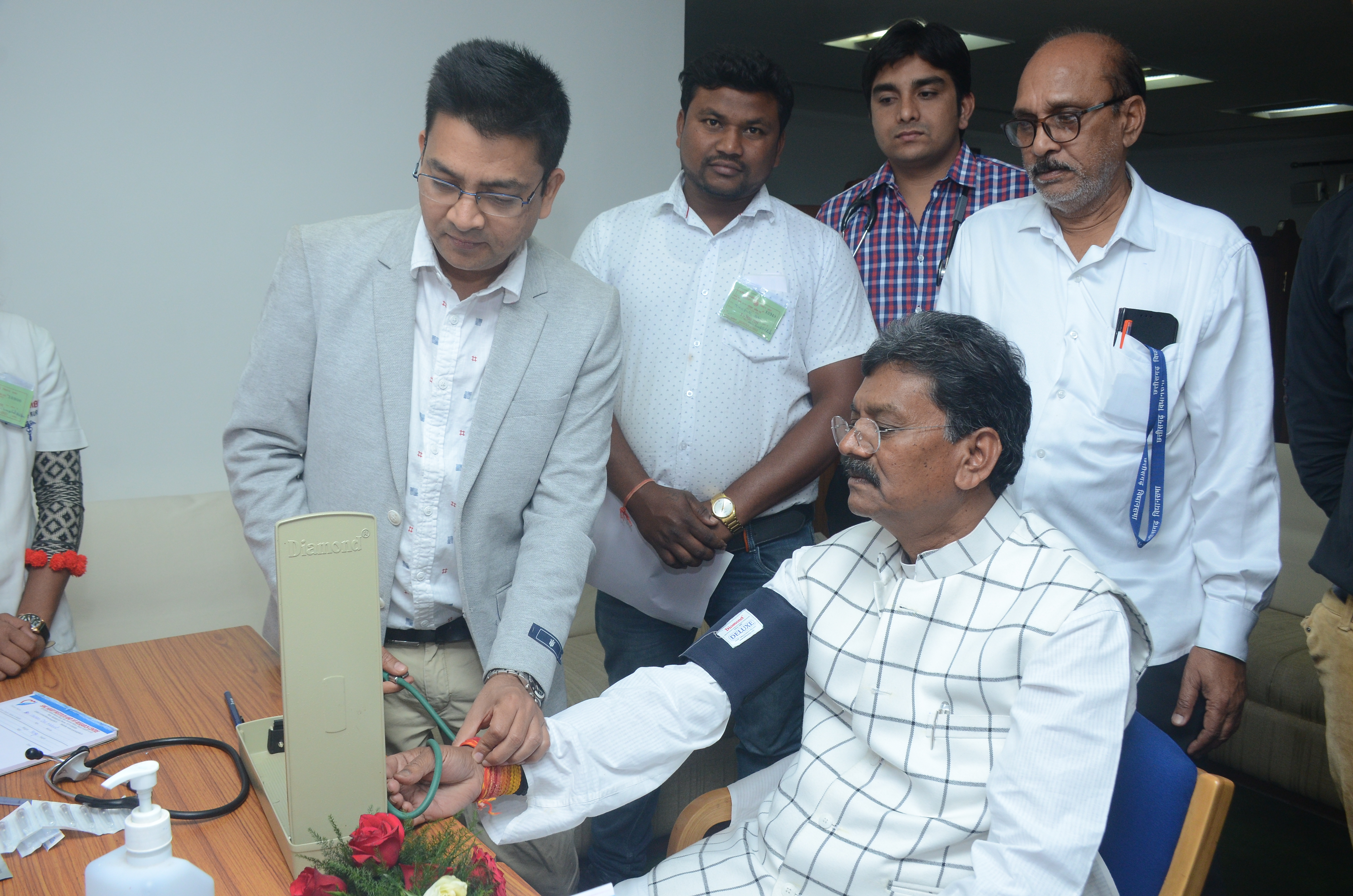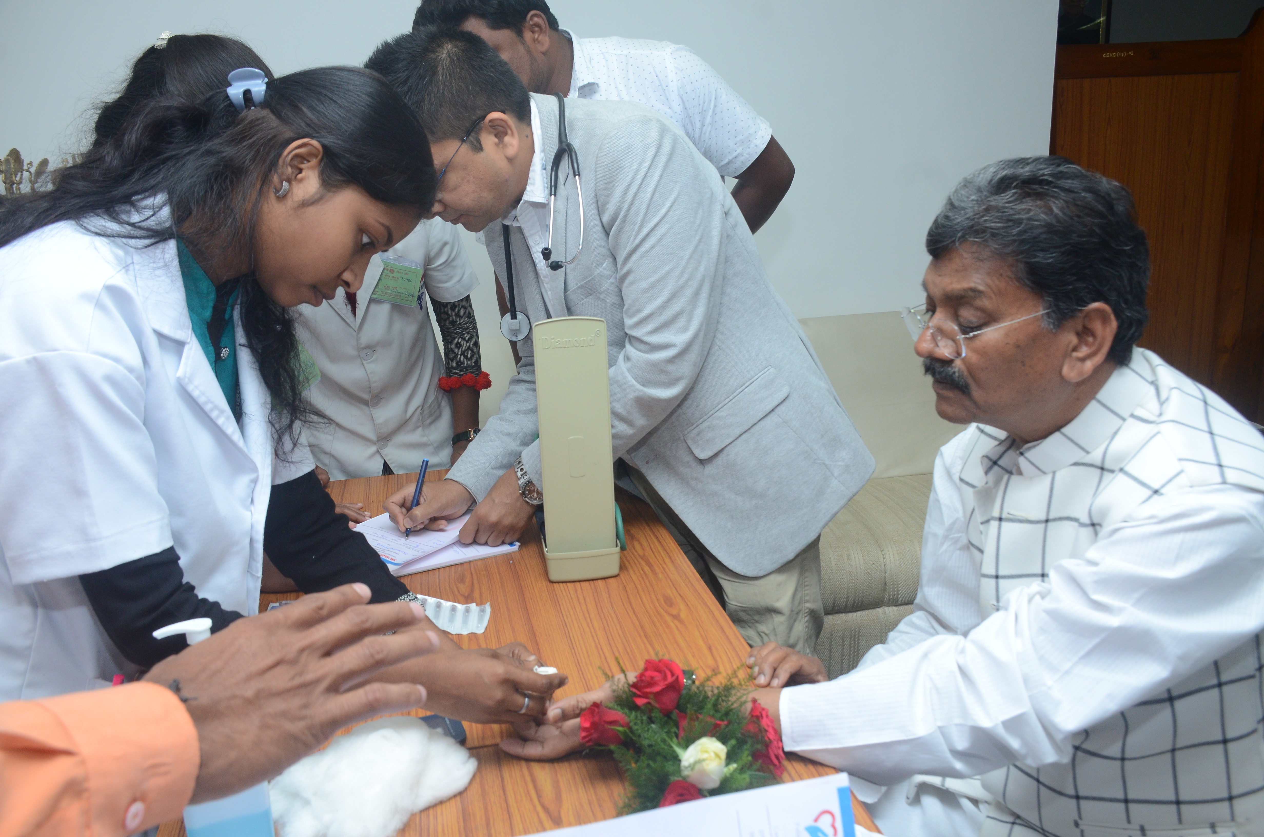 - मान. विधान सभा अध्यक्ष डॉ. चरण दास महंत ने आज विधानसभा परिसर में मान. विधायकों के लिए "एस एम सी हार्ट इंस्टीट्यूट एण्ड आई वी एफ रिसर्च सेन्टर" द्वारा आयोजित स्वास्थ्य शिविर का उद्घाटन किया एवं स्वास्थ्य परीक्षण कराया। इस शिविर में मान. विधायकों ने डॉ. सतीश सूर्यवंशी एवं उनके सहयोगियों से अपना स्वास्थ्य परीक्षण कराया। इस अवसर पर विधानसभा सचिव श्री चन्द्र शेखर गंगराड़े भी उपस्थित थे। |