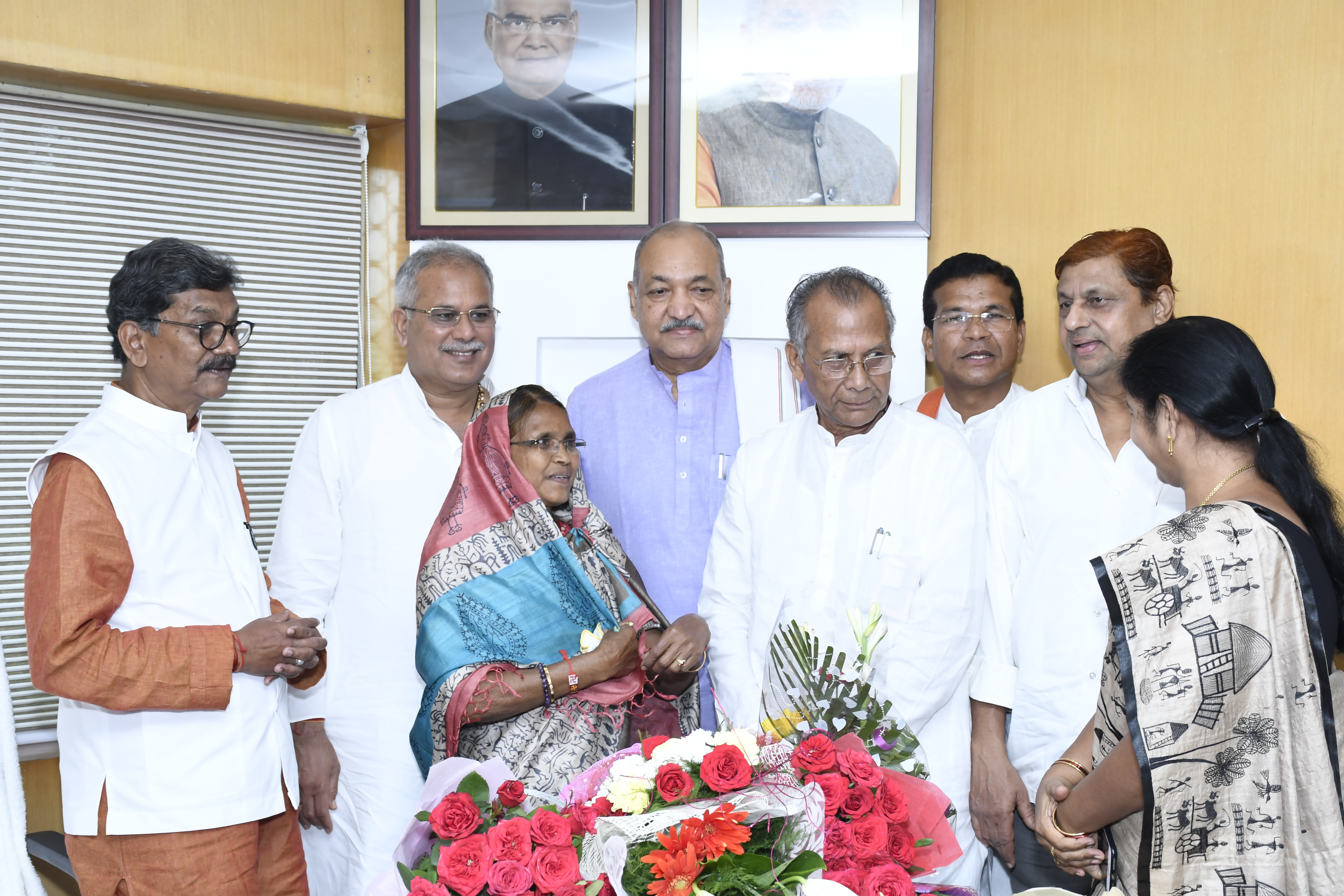 -विधानसभा अध्यक्ष डॉ. चरणदास महंत ने मान. विधायक श्रीमती देवती कर्मा को शपथ दिलाई |