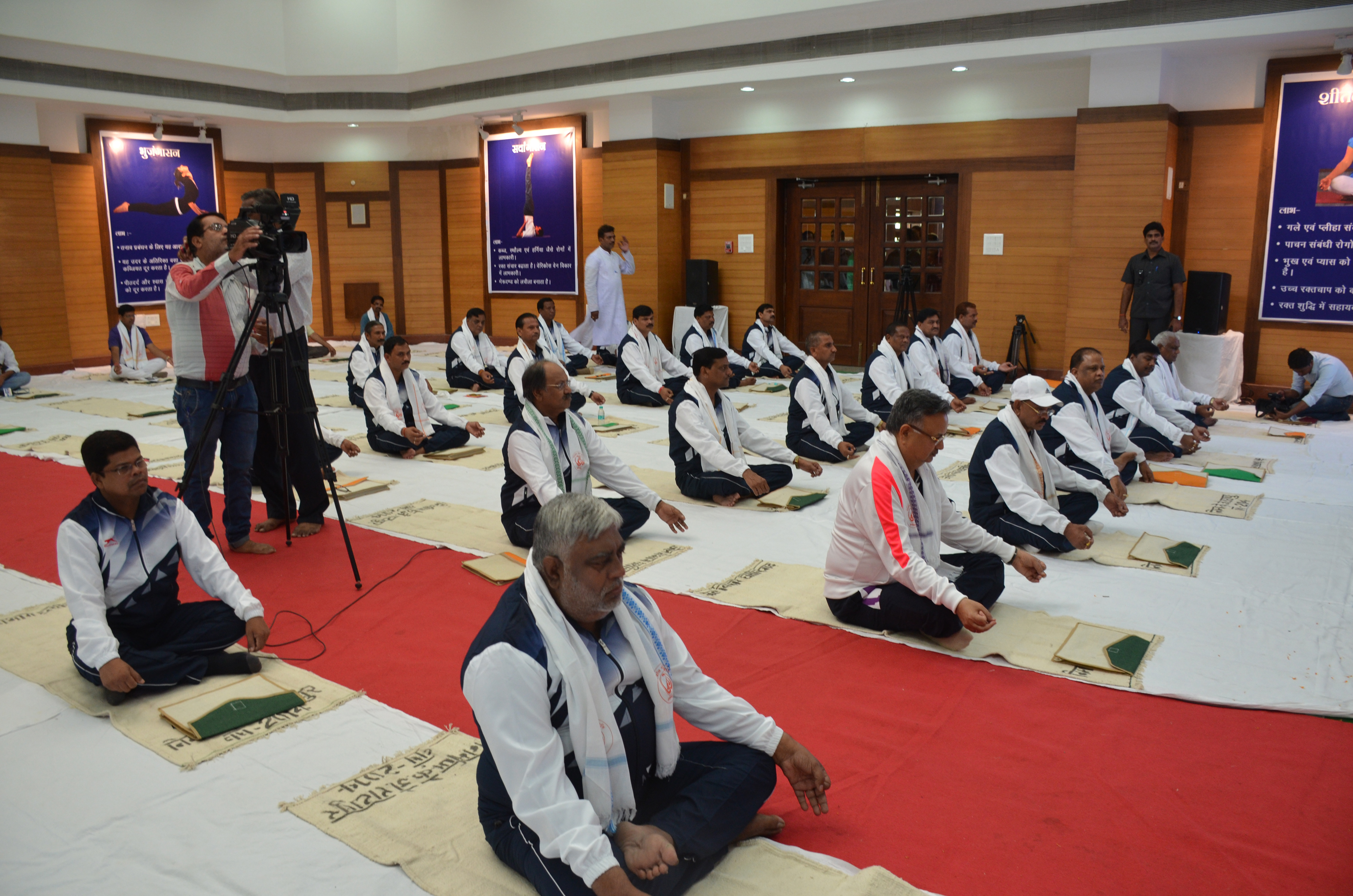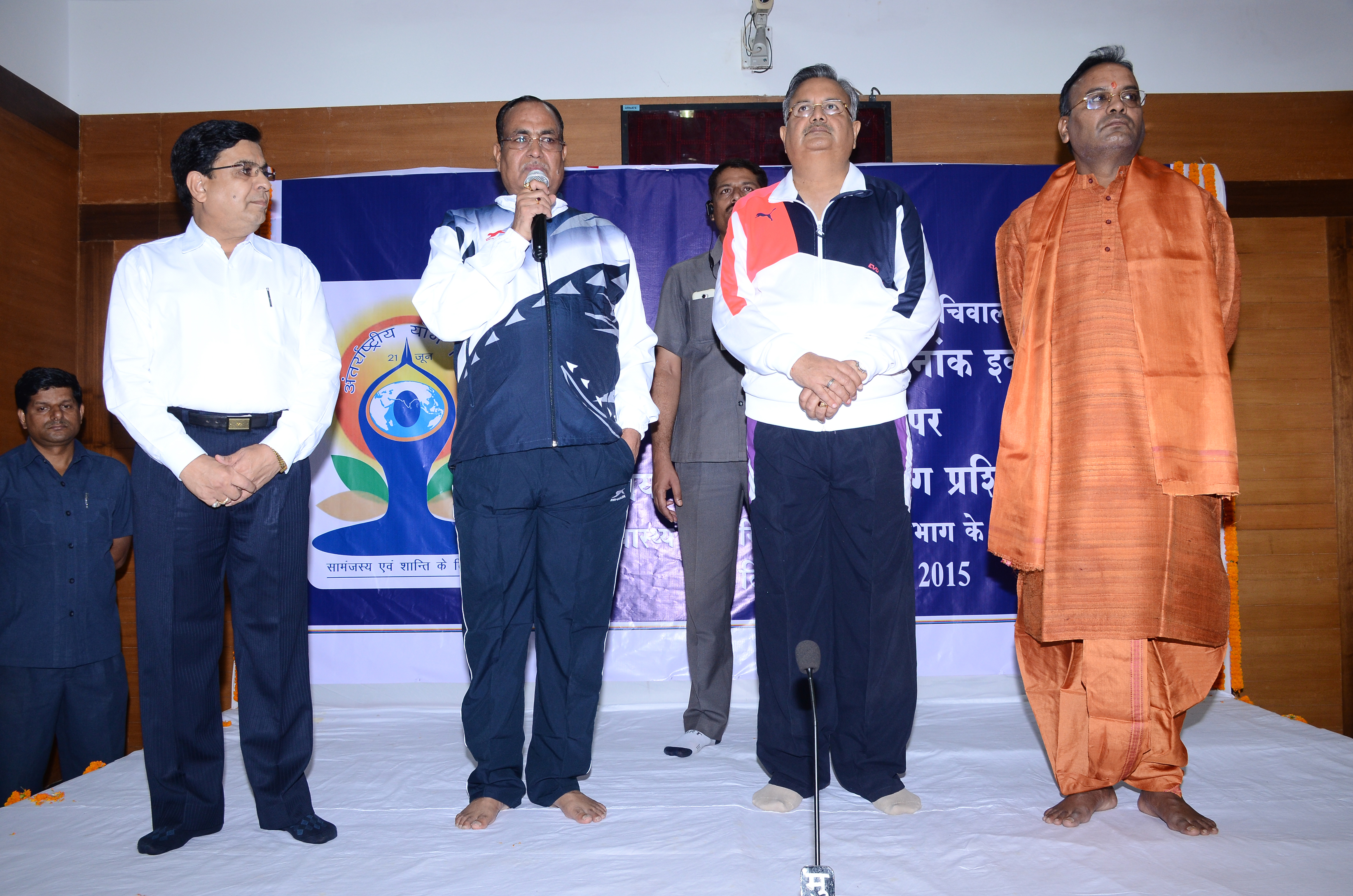 अन्तर्राष्ट्रीय योग दिवस के अवसर पर विधानसभा परिसर में मान. विधायकों के योग प्रशिक्षण शिविर का शुभारम्भ मान. विधानसभा अध्यक्ष, मान. मुख्यमंत्री, मान. मंत्री सहित मान. विधायकों ने लिया "योग का प्रशिक्षण" |