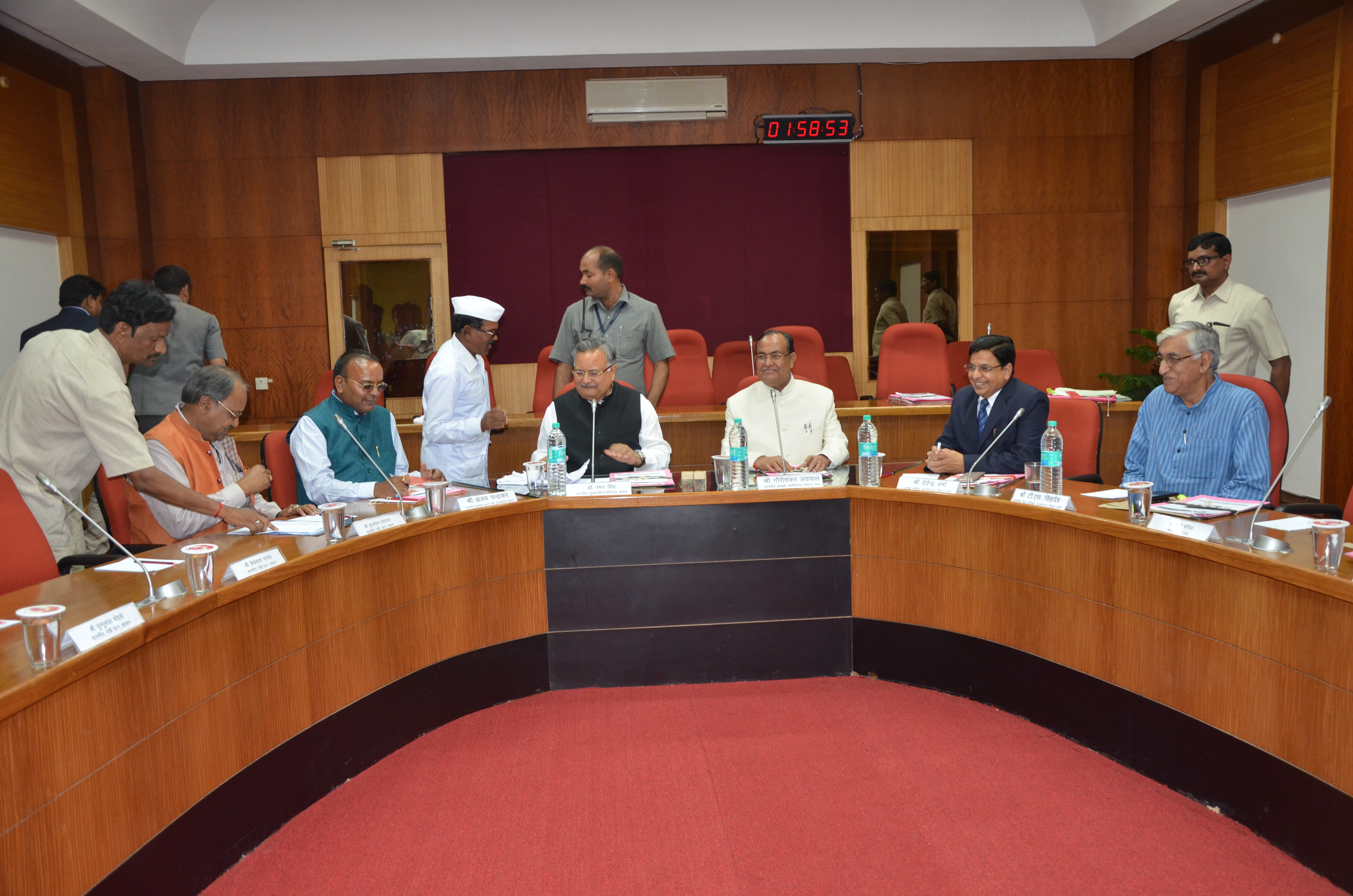 छत्तीसगढ़ विधान सभा की "विधायक क्लब" की बैठक आज विधान सभा स्थित मुख्य समिति-कक्ष में सम्पन्न हुई। बैठक में विधान सभा अध्यक्ष श्री गौरीशंकर अग्रवाल, मुख्यमंत्री डॉ. रमन सिंह, संसदीय कार्यमंत्री श्री अजय चन्द्राकर, कृषि मंत्री श्री बृजमोहन अग्रवाल, स्वास्थ्य मंत्री श्री अमर अग्रवाल, शिक्षा मंत्री श्री केदार कश्यप, नेता प्रतिपक्ष श्री टी.एस. सिंहदेव, मान. विधायक गण एवं विधान सभा के प्रमुख सचिव श्री देवेन्द्र वर्मा उपस्थित थे। |