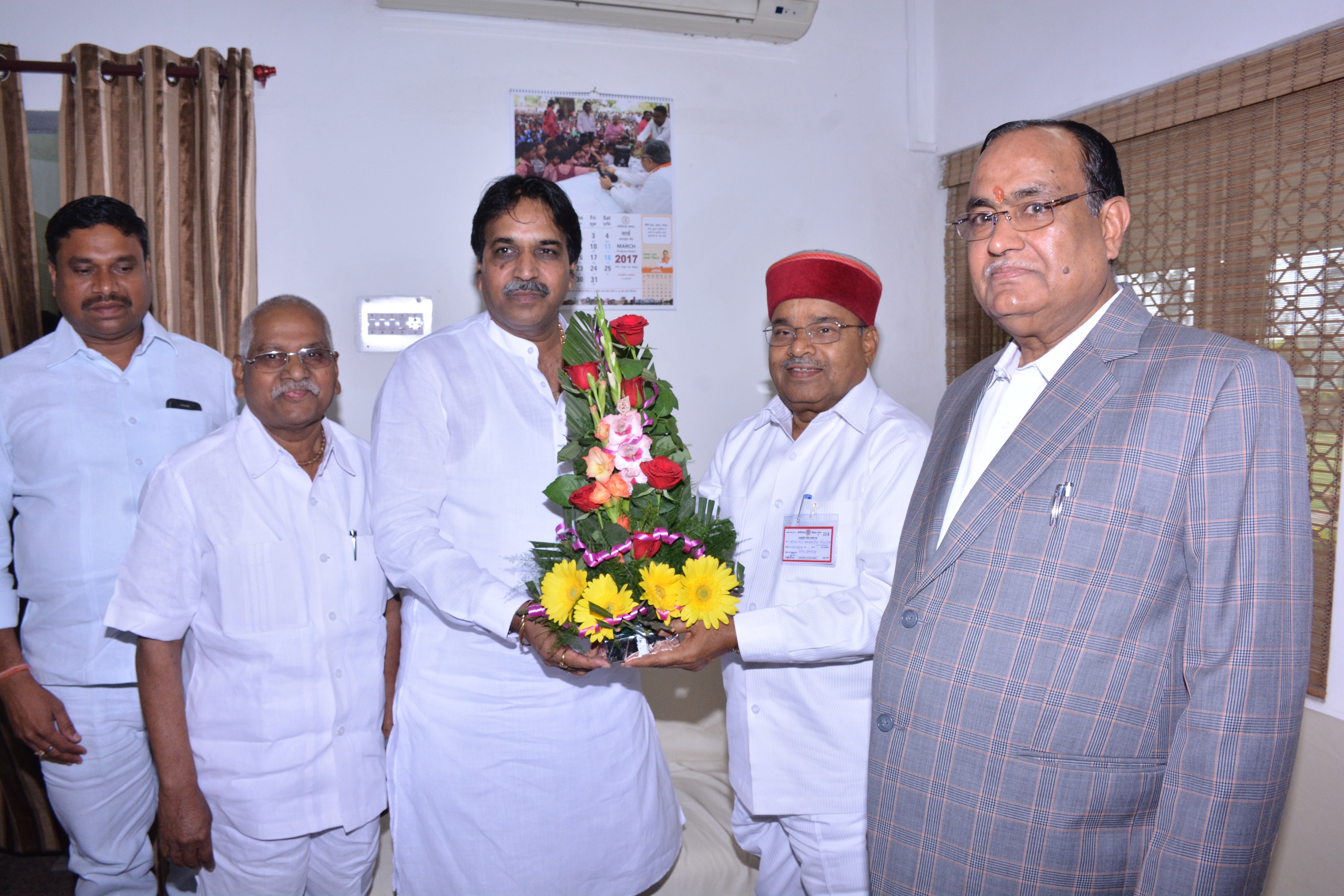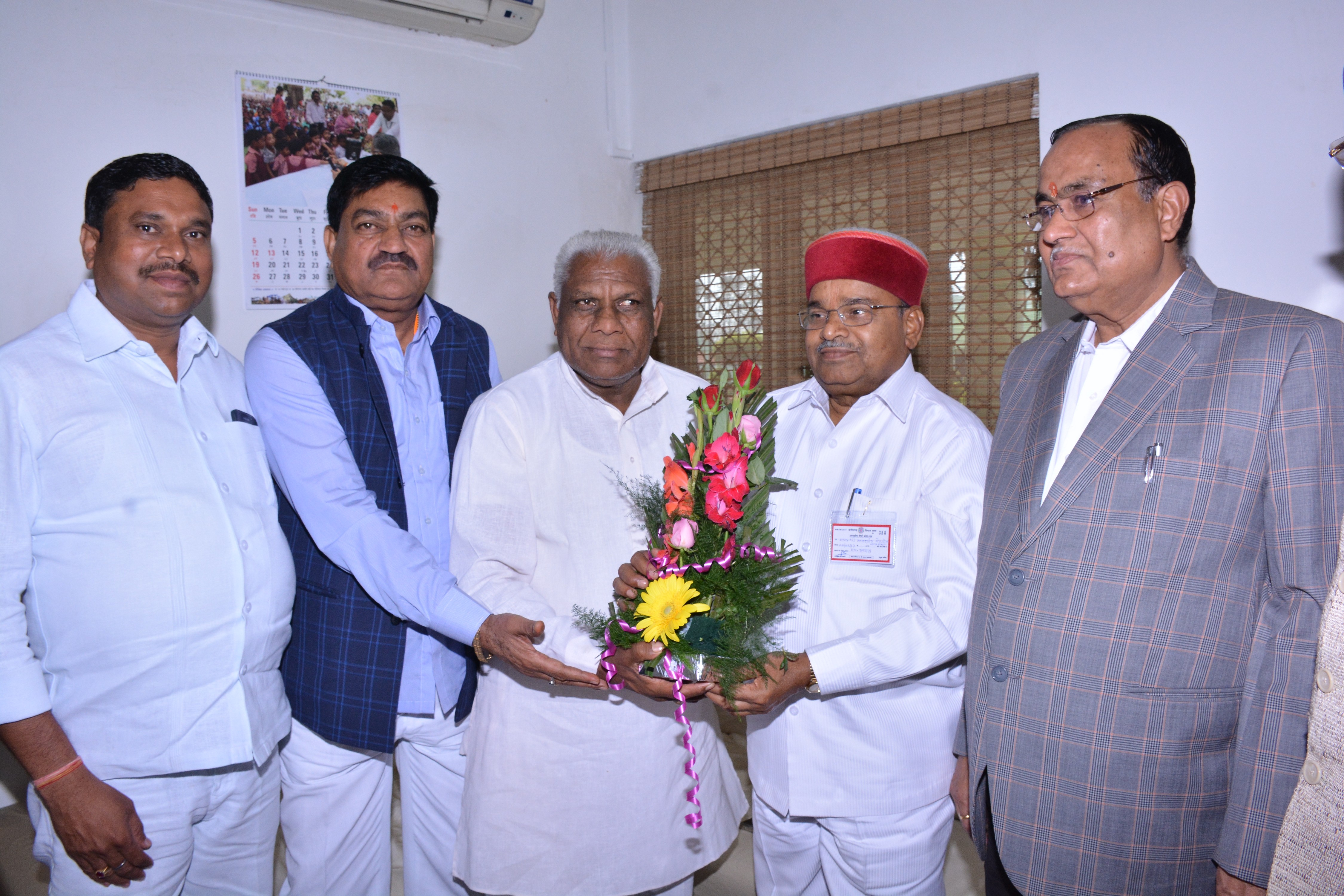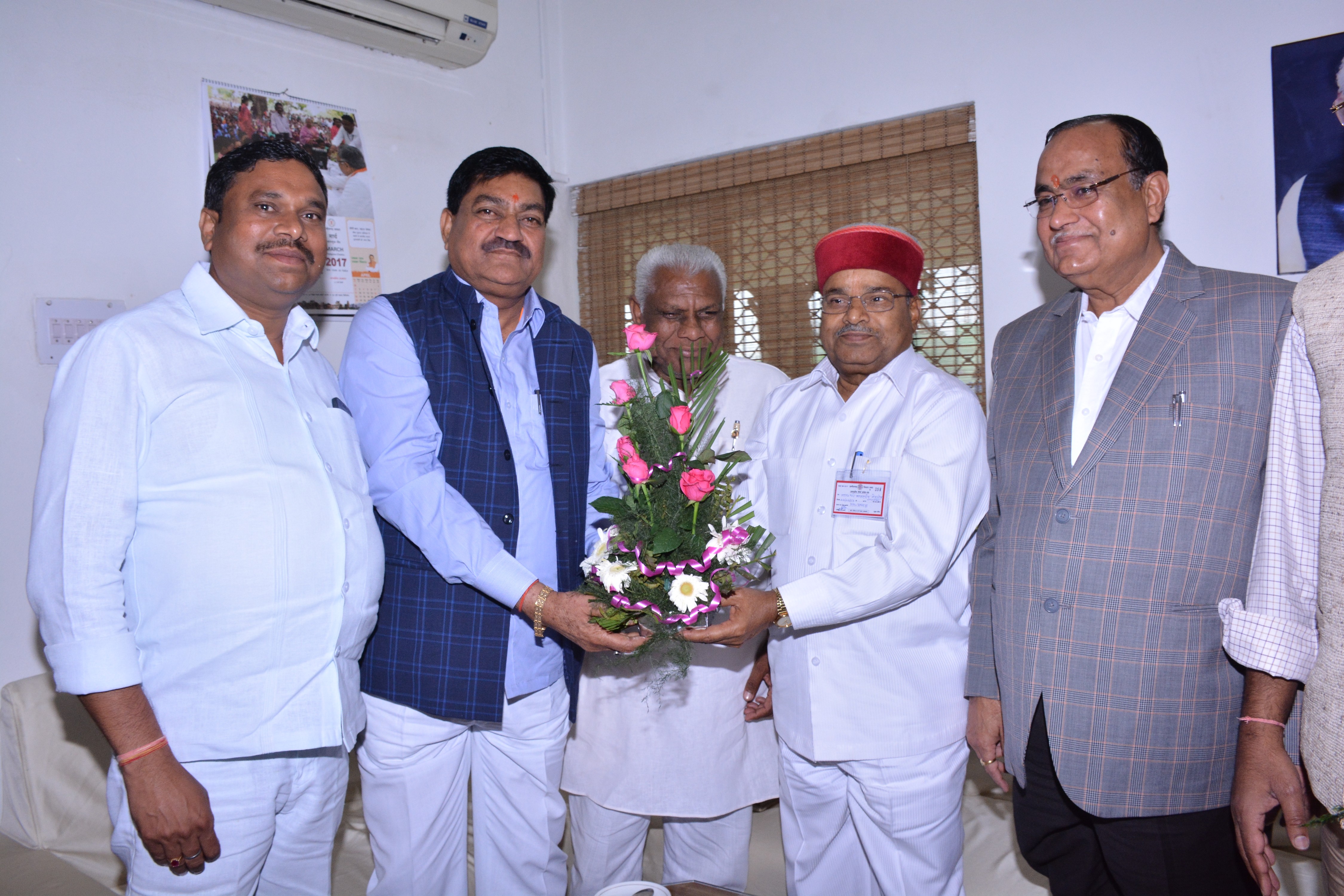 छत्तीसगढ़ विधानसभा अध्यक्ष श्री गौरीशंकर अग्रवाल से आज विधान सभा परिसर स्थित उनके कक्ष मे केंद्रीय सामाजिक न्याय एवं अधिकारिता मंत्री श्री थावरचन्द्र गहलोत ने सौजन्य मुलाक़ात की । विधानसभा अध्यक्ष श्री गौरीशंकर अग्रवाल ने केंद्रीय मंत्री श्री थावरचन्द्र गहलोत का पुष्प-गुच्छ भेंट कर गर्मजोशी से स्वागत किया । इस अवसर पर संसदीय कार्यमंत्री श्री अजय चंद्राकर,खाद्यमंत्री श्री पुन्नूलाल मोहले,संस्कृति,पर्यटन एवं सहकारिता मंत्री श्री दयालदास बघेल,लोक निर्माण मंत्री श्री राजेश मूणत एवं विधानसभा के प्रमुख सचिव श्री देवेंद्र वर्मा ने भी पुष्प-गुच्छ भेंट कर उनका स्वागत किया । |