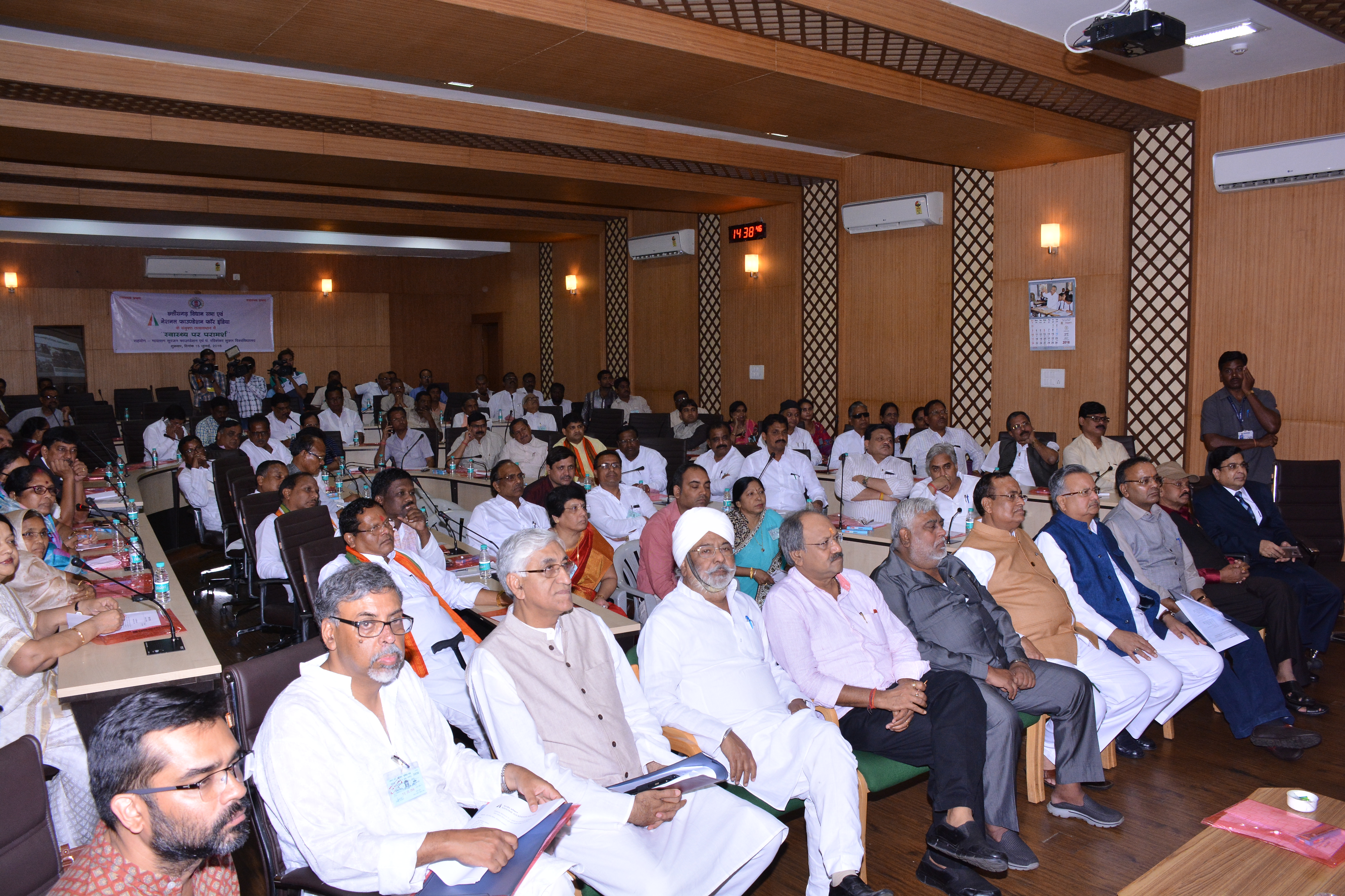 छत्तीसगढ विधानसभा एवं नेशनल फाउण्डेशन फार इंडिया के संयुक्त तत्वावधान में आज विधानसभा परिसर स्थित नवीन समिति कक्ष में मान. सदस्यों के लिए ``स्वास्थ्य विषय पर परामर्श कार्यक्रम’’ का आयोजन किया गया। कार्यक्रम में विधानसभा अध्यक्ष मान. श्री गौरीशंकर अग्रवाल, मान. मुख्यमंत्री डॉ. रमन सिंह, मान. नेता प्रतिपक्ष श्री टी.एस.सिंहदेव, स्वास्थ्य मंत्री श्री अजय चन्द्राकर, मंत्रिपरिषद के मान. सदस्यगण, मान. संसदीय सचिव, मान. विधायकगण एवं विधानसभा के प्रमुख सचिव श्री देवेन्द्र वर्मा भी उपस्थित थे। कार्यक्रम की महत्ता पर प्रकाश डालते हए विधानसभा अध्यक्ष श्री गौरीशंकर अग्रवाल ने कहा कि-आज के समय में स्वास्थ्य के प्रति जागरूकता लाने में नेशनल फाउण्डेशन फॉर इंडिया द्वारा जो प्रयास किये जा रहे हैं वह सराहनीय है। प्रदेश से मातृ एवं शिशु मृत्यु-दर को नवाचार के माध्यम से कम करने का राज्य सरकार द्वारा पूरा प्रयास किया जा रहा है और उम्मीद है कि राज्य शासन की योजनाओं के प्रचार-प्रसार से इस को नियंत्रित किया जा सकेगा। इस अवसर पर मुख्यमंत्री डॉ. रमन सिंह ने ``स्वास्थ्य प्रथम, मोबाइल वानी’’ के माध्यम से अपना संदेश देते हुए कहा कि-यह योजना स्वास्थ्य के क्षेत्र में आम आदमी के स्वास्थ्य संबंधी निराकरण हेतु अत्यंत महत्वपूर्ण है, एवं प्रदेश का आम नागरिक निःशुल्क मोबाईल के माध्यम से स्वास्थ्य संबंधी समस्याओं का निराकरण विशेषज्ञ चिकित्सकों से चर्चा के माध्यम से कर सकेगें। नेता प्रतिपक्ष श्री टी.एस.सिंहदेव ने कहा कि- इस तरह के जागरूकता अभियान एवं जानकारियों के आदान-प्रदान से जनप्रतिनिधि अपनी जिम्मेदारी बेहतर तरीके से निभा सकेगें। स्वास्थ्य मंत्री श्री अजय चन्द्राकर ने अपने उद्बोधन में स्वास्थ्य संबंधी जागरूकता के संबंध में राज्य सरकार एवं स्वास्थ्य विभाग द्वारा किये जाने वाले प्रयासों का विस्तार से उल्लेख किया। इस कार्यक्रम में सेंटर फार हेल्थ एंड सोशल जस्टिस नई दिल्ली के निदेशक एवं जनस्वास्थ्य विशेषज्ञ डॉ. अभिजित दास ने ``स्वास्थ्य एवं विकास पर मान. विधायकों की भूमिका’’ विषय पर अपना पावर पाइंट प्रेजेंटेशन प्रस्तुत किया। इस अवसर पर नेशनल फाउण्डेशन फार इंडिया के कार्यकारी निदेशक पद्मश्री डॉ. ए.टी.दाबके ने भी अपने विचार व्यक्त किये। इस अवसर विधान सभा के प्रमुख सचिव श्री देवेन्द्र वर्मा ने भी अपने विचार व्यक्त किये।