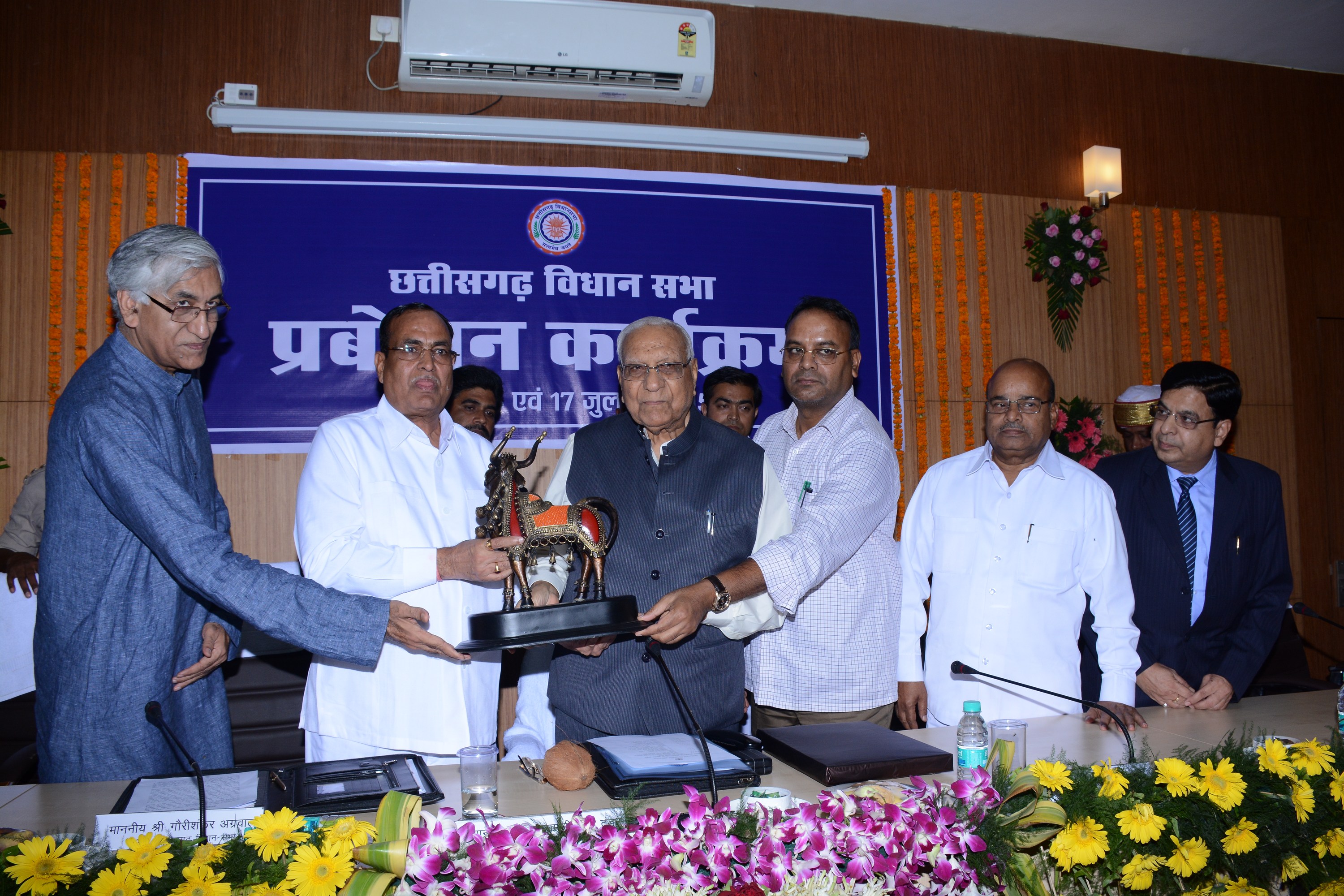 दो दिवसीय प्रबोधन कार्यक्रम के समापन अवसर पर मान. विधानसभा अध्यक्ष श्री गौरीशंकर अग्रवाल ने कहा कि-प्रबोधन कार्यक्रम में विभिन्न विषयों पर वरिष्ठ संसदविदों ने अपने दीर्घ संसदीय अनुभव के आधार पर प्रस्तुत व्याख्यान में मान. सदस्यों को सभा में संसदीय प्रक्रियाओं एवं इसके व्यवहारिक पहलुओं को आत्मसात करने एवं संसदीय ज्ञान की अभिवृद्धि में महत्वपूर्ण भूमिका निभाई है। उन्होने विश्वास व्यक्त किया कि इस कार्यक्रम के पश्चात् मानसून सत्र के दौरान जब मान. सदस्य सभा की कार्यवाही में हिस्सा लेगें तो इस प्रबोधन कार्यक्रम का प्रभाव मान. सदस्यों के कार्य विचार और व्यवहार में अवश्य परिलक्षित होगा। इस अवसर पर नेता प्रतिपक्ष श्री टी.एस.सिंहदेव ने कहा कि-दो दिवसीय इस प्रबोधन कार्यक्रम में वरिष्ठ एवं अनुभवी संसदविज्ञों से इतना अधिक संसदीय ज्ञान प्राप्त हुआ है जो हम सदन में काफी समय बैठकर भी प्राप्त नहीं कर सकते थे । कार्यक्रम के प्रारंभ में विधानसभा के प्रमुख सचिव श्री देवेन्द्र वर्मा ने अपने स्वागत उद्बोधन में कहा कि-इस तरह के आयोजन से छत्तीसगढ विधानसभा के मान. सदस्यों के संसदीय ज्ञान को विस्तार मिलेगा । प्रबोधन कार्यक्रम के समापन अवसर पर मान. विधानसभा अध्यक्ष मान. श्री गौरीशंकर अग्रवाल ने माननीय राज्यपाल महोदय श्री बलरामजी दास टंडन का शाल, श्रीफल से सम्मान किया एवं उन्हें प्रतीक चिन्ह भेंट किया । अंत में संसदीय कार्यमंत्री श्री अजय चन्द्राकर ने प्रबोधन कार्यक्रम को सफल बनाने के लिए सभी का आभार व्यक्त किया । |