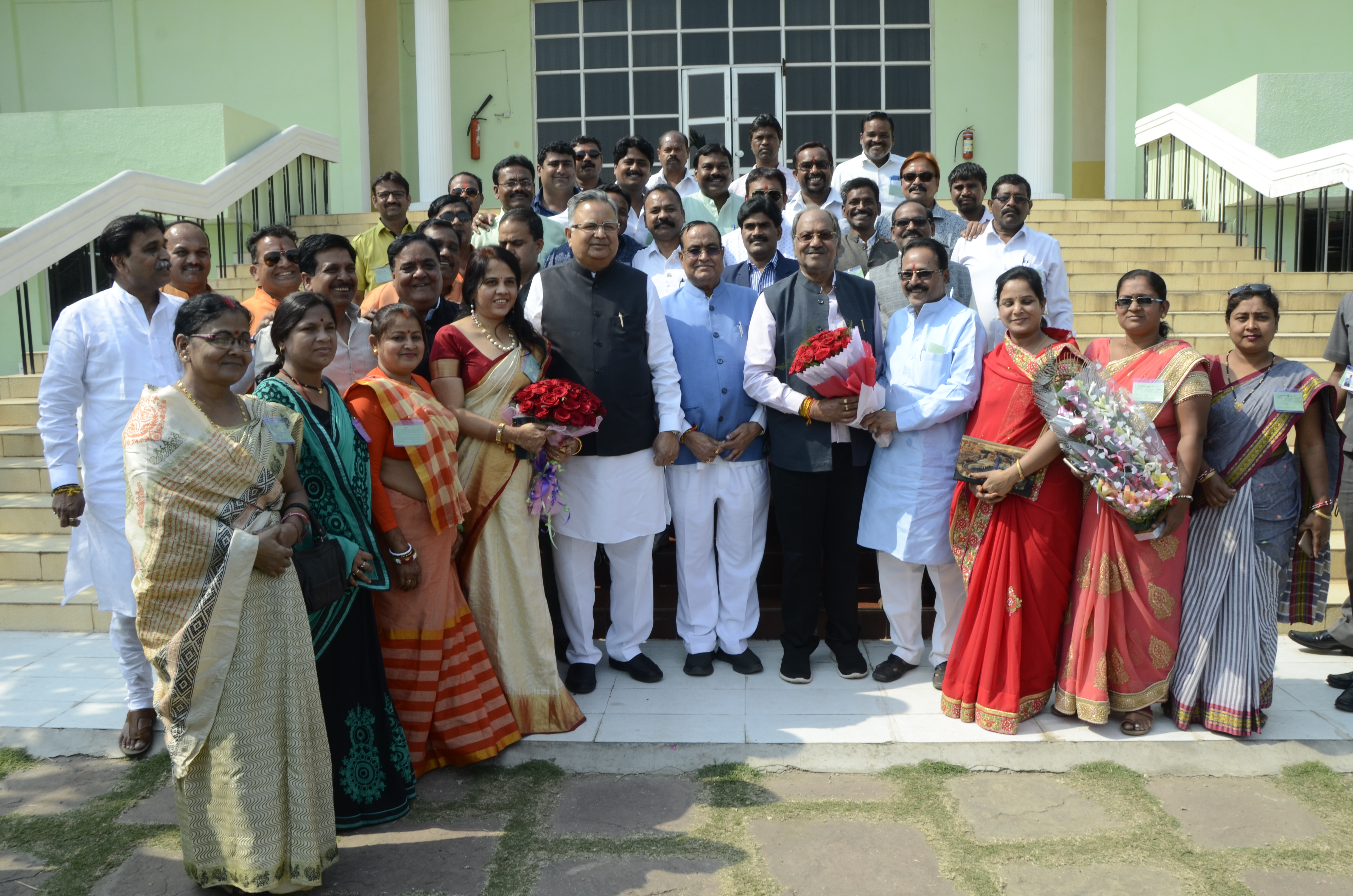 रायपुर नगर निगम के सभापति एवं पार्षदों ने आज विधानसभा परिसर में विधानसभा अध्यक्ष मान. श्री गौरीशंकर अग्रवाल एवं मान. मुख्यमंत्री डॉ. रमन सिंह से सौजन्य भेंट की। इस अवसर पर कृषि मंत्री मान. श्री बृजमोहन अग्रवाल, लोक निर्माण विभाग के मंत्री मान. श्री राजेश मूणत एवं मान. विधायक गण उपस्थित थे।