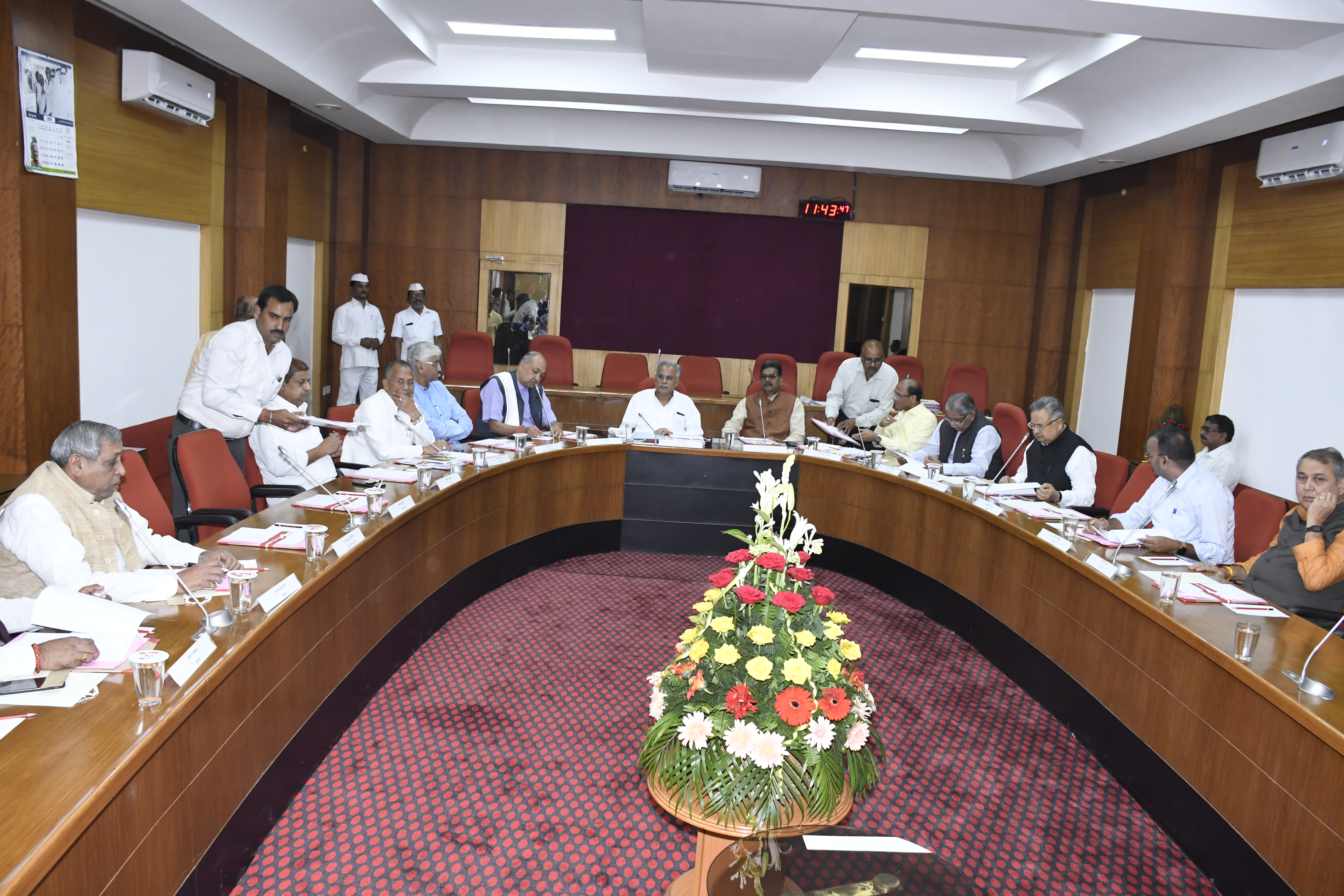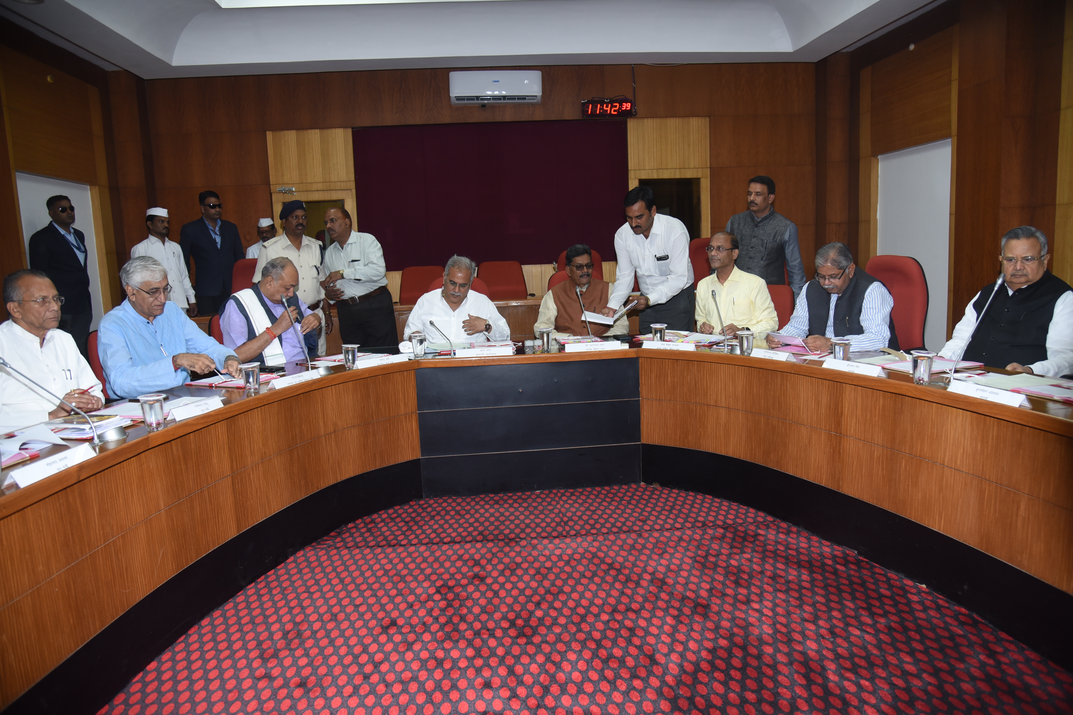 छत्तीसगढ़ विधान सभा के दिनांक 25 नवम्बर 2019 से प्रारंभ होने वाले आगामी शीतकालीन सत्र के लिए छत्तीसगढ़ विधान सभा की कार्यमंत्रणा समिति की बैठक आज पूर्वाह्न 11.00 बजे विधान सभा परिसर स्थित मुख्य समिति कक्ष में विधान सभा अध्यक्ष मान. डॉ. चरणदास महंत की अध्यक्षता में सम्पन्न हुई। बैठक में मान. मुख्यमंत्री श्री भूपेश बघेल, मान. संसदीय कार्यमंत्री श्री रविन्द्र चौबे, मान. नेता प्रतिपक्ष श्री धरमलाल कौशिक, मान. पंचायत एवं ग्रामीण विकास मंत्री श्री टी.एस. सिंहदेव, मान. गृह मंत्री श्री ताम्रध्वज साहू, मान. वन मंत्री श्री मोहम्मद अकबर, मान. नगरीय प्रशासन मंत्री डॉ. शिवकुमार डहरिया, खाद्य एवं नागरिक आपूर्ति मंत्री मान. श्री अमरजीत भगत, मान. विधायकगण, मुख्य सचिव छत्तीसगढ़ शासन श्री आर.पी. मंडल एवं विधान सभा के प्रमुख सचिव श्री चन्द्र शेखर गंगराड़े भी उपस्थित थे।