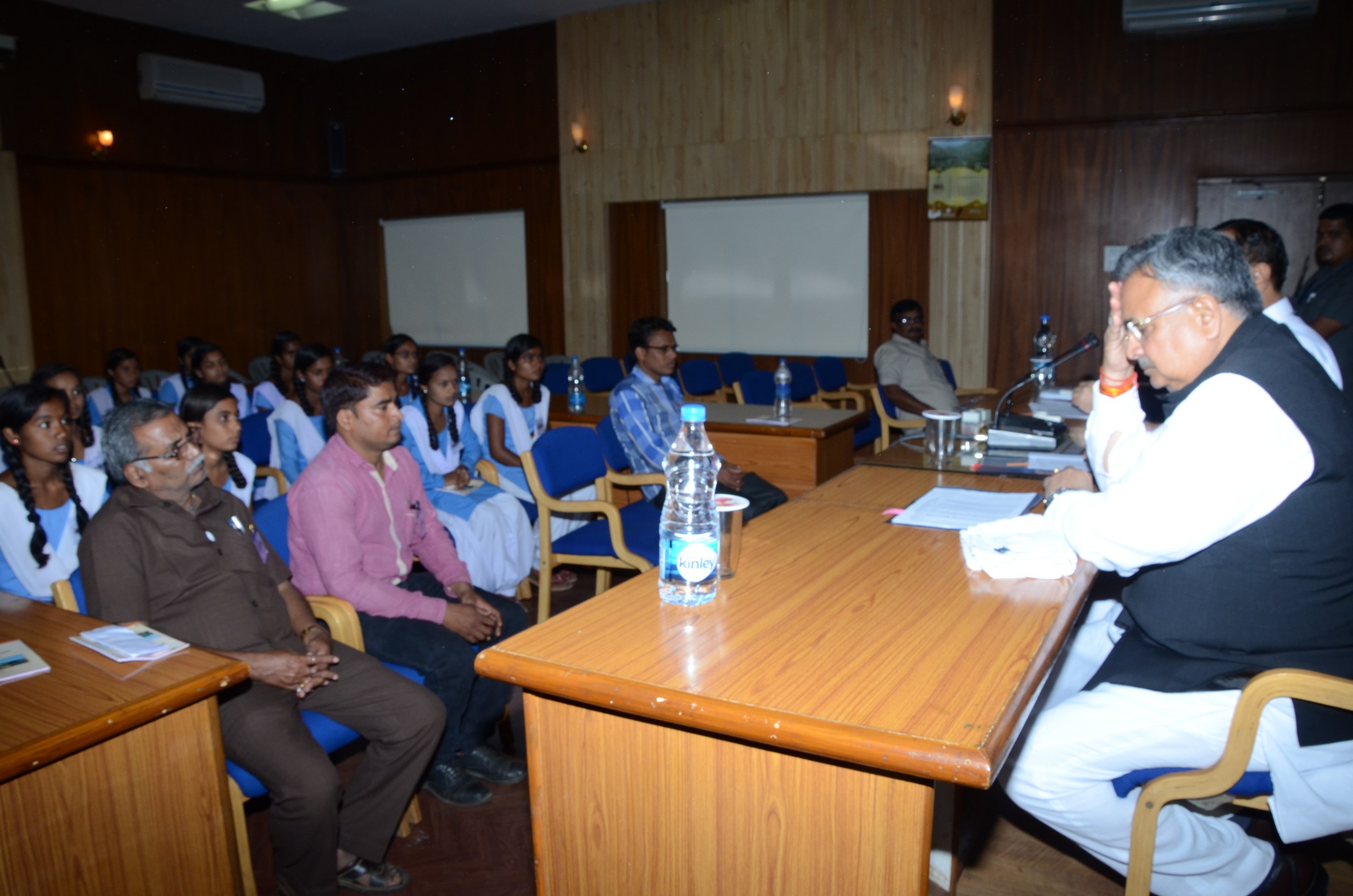 शासकीय उच्चतर माध्यमिक विद्यालय जर्वे, विकासखण्ड- पलारी, जिला-बलौदा बाजार के विद्यार्थियों ने आज विधानसभा की कार्यवाही का अवलोकन किया। कार्यवाही अवलोकन पश्चात् इन्होंने विधानसभा परिसर में विधानसभा अध्यक्ष श्री गौरीशंकर अग्रवाल, मुख्यमंत्री डॉ. रमन सिंह एवं संसदीय सचिव श्री लाभचन्द बाफना से भेंट की। इस अवसर पर विधानसभा के प्रमुख सचिव श्री देवेन्द्र वर्मा भी उपस्थित थे। |