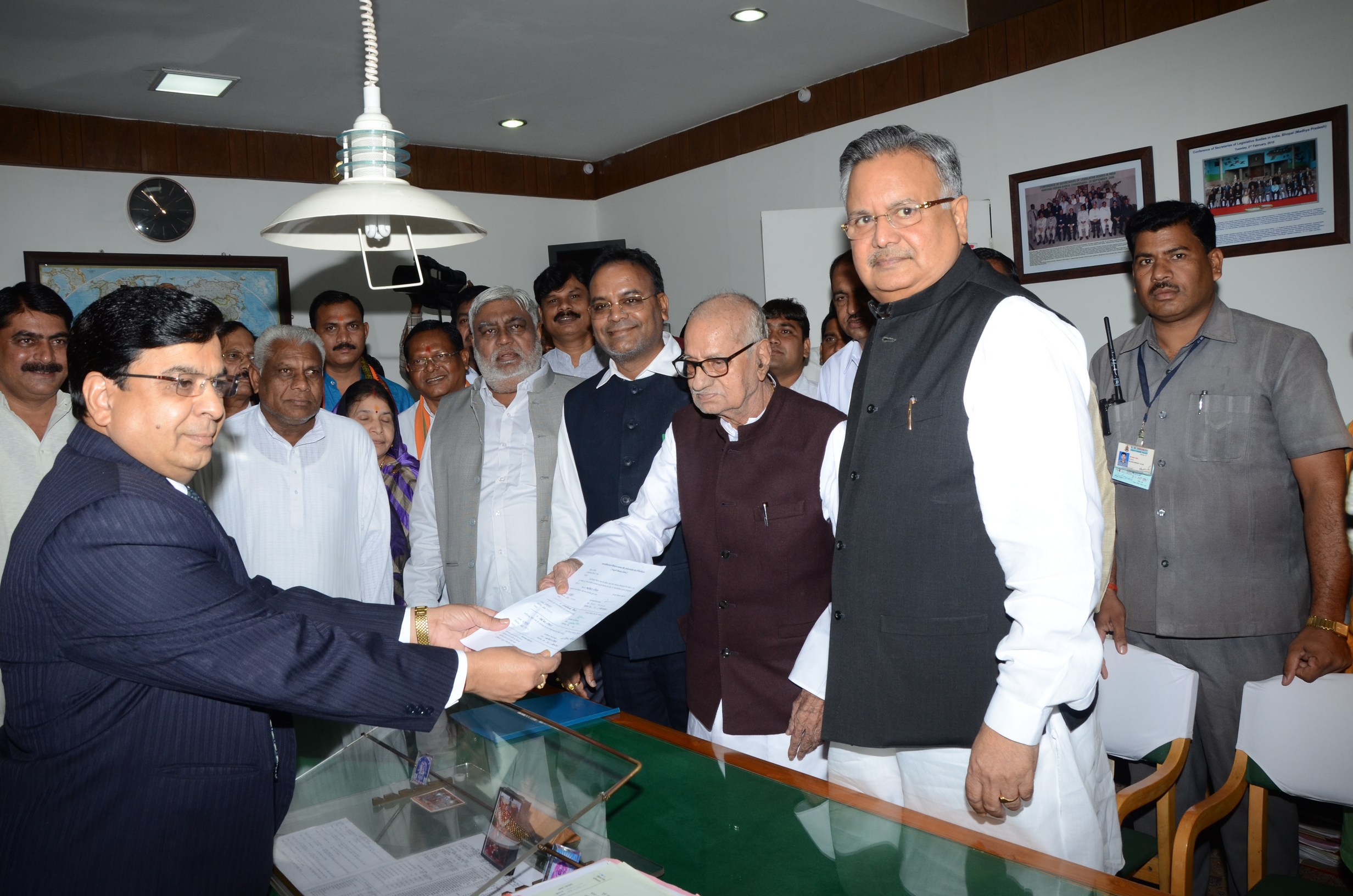 - विधानसभा उपाध्यक्ष पद के लिए मान. श्री बद्रीधर दीवान एवं मान. श्री चिन्तामणी महाराज ने नामांकन प्रस्तुत किया |