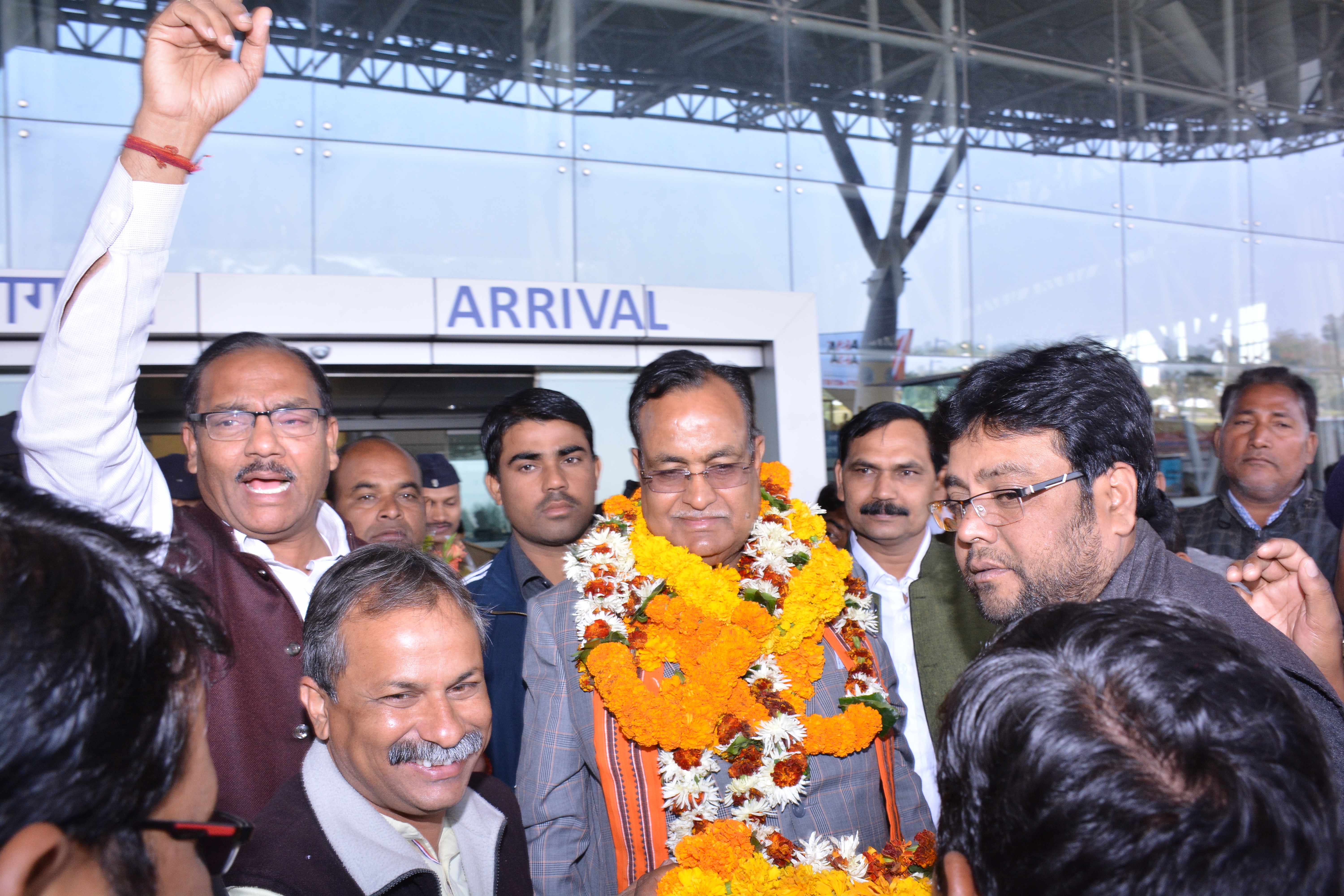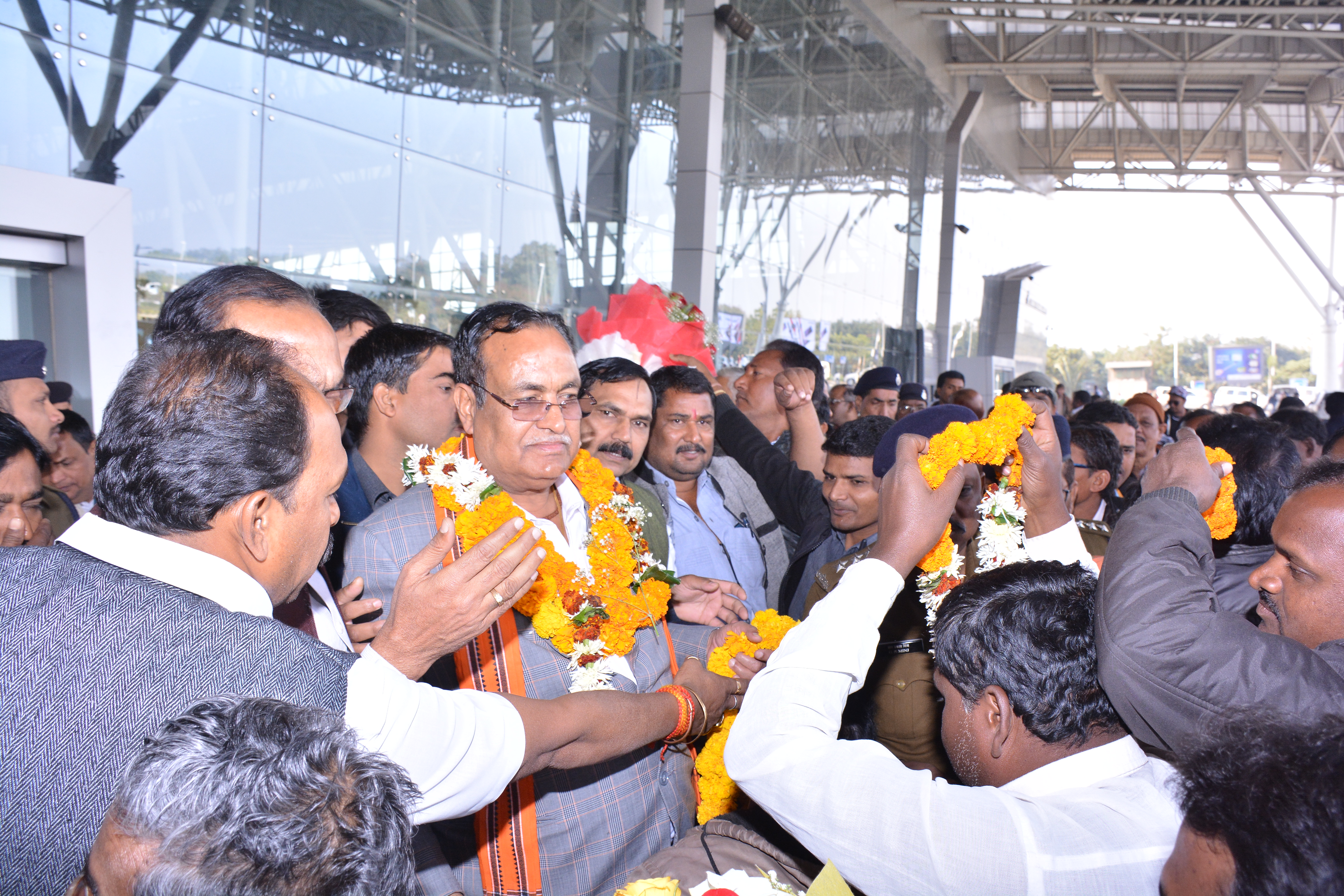 - लंदन में आयोजित राष्ट्रकुल संसदीय सम्मेलन में भाग लेने के पश्चात् विधान सभा अध्यक्ष मान. श्री गौरीशंकर अग्रवाल रायपुर पहुंचे - विमानतल पर हुआ आत्मीय स्वागत |