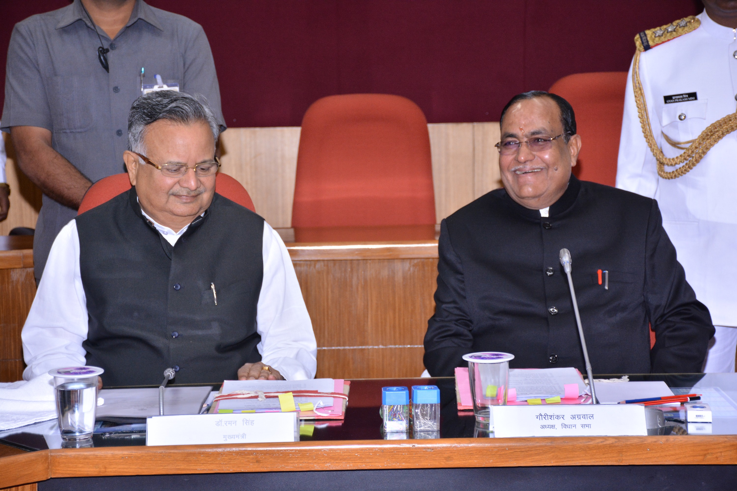 छ्तीसगढ़ विधानसभा की कार्यमंत्रणा समिति की बैठक आज विधानसभा स्थित मुख्य समिति कक्ष में विधान सभा अध्यक्ष मान. श्री गौरीशंकर अग्रवाल की अध्यक्षता में संपन्न हुई। बैठक में मान. मुख्यमंत्री डॉ. रमन सिंह, मान. नेता प्रतिपक्ष श्री टी.एस. सिंहदेव, मान. संसदीय कार्यमंत्री श्री अजय चन्द्राकर, मान. राजस्व एवं उच्च शिक्षा मंत्री श्री प्रेमप्रकाश पाण्डेय, मान. कृषि एवं जल संसाधन मंत्री श्री बृजमोहन अग्रवाल, मान. गृह मंत्री श्री रामसेवक पैकरा, मान. खाद्यमंत्री श्री पुन्नूलाल मोहले, मान. विधायकगण एवं विधानसभा के प्रमुख सचिव श्री देवेन्द्र वर्मा भी उपस्थित थे।