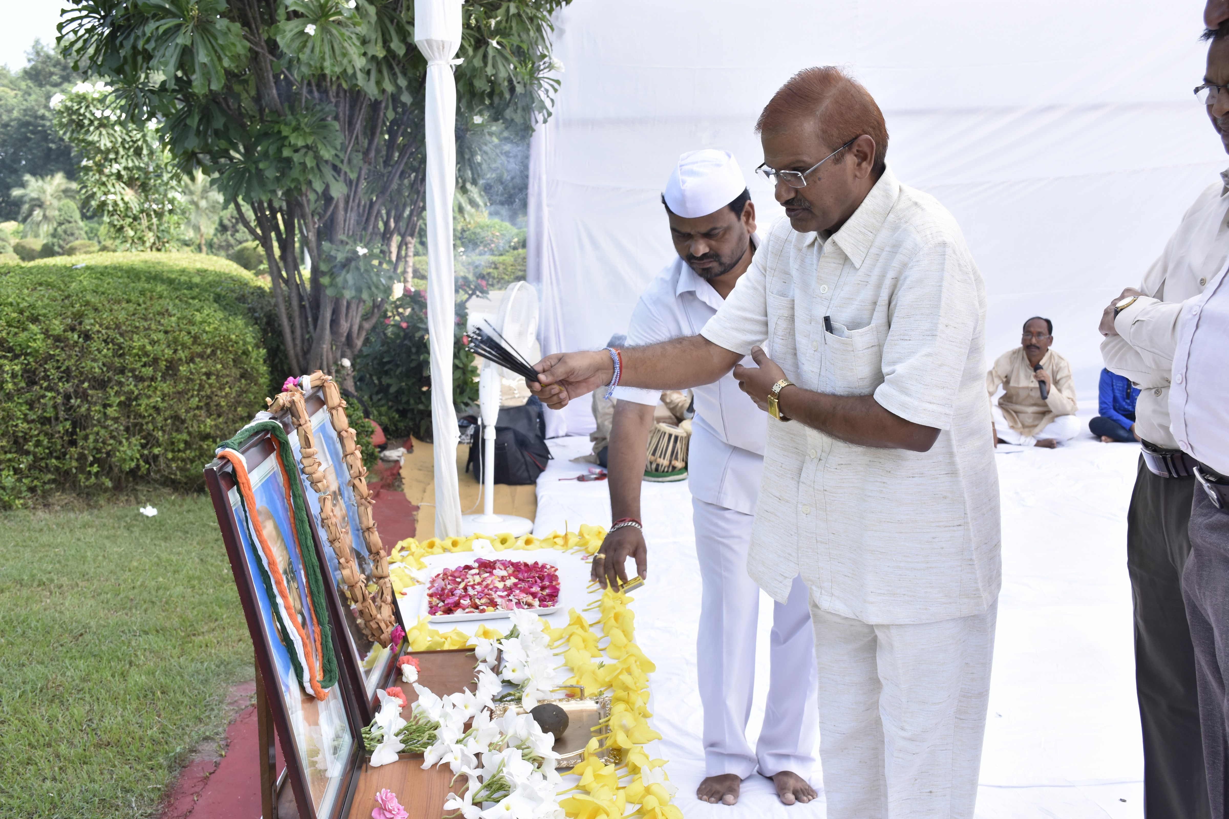 राष्ट्रपिता "महात्मा गांधी" की जयंती पर विधान सभा सचिवालय परिसर में राष्ट्रपिता "महात्मा गांधी" की प्रतिमा के समक्ष आयोजित कार्यक्रम में आज विधान सभा के अधिकारियों एवं कर्मचारियों ने राष्ट्रपिता "महात्मा गांधी" एवं "पूर्व प्रधानमंत्री लाल बहादुर शास्त्री" के चित्र पर माल्यार्पण एवं पुष्प अर्पित कर अपने श्रद्धासुमन अर्पित किये। इस अवसर पर सचिवालय के श्री अनुराग सिंह, श्री कुन्दन चौहान, श्री लक्ष्मीकांत सेन, श्री राजेश चौहान, श्री रामकुमार यादव एवं साथियों द्वारा महात्मा गांधी के प्रसिद्ध भजन "वैष्णव जन तो तेने कहिए" एवं "रघुपति राघव राजा राम" का गायन किया। |