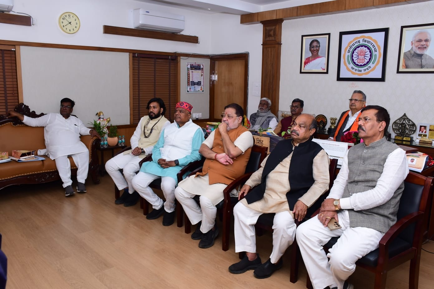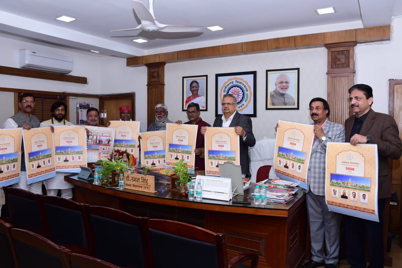 - मान. विधान सभा अध्यक्ष डॉ. रमन सिंह ने अपने शंकर नगर स्थित ‘‘स्पीकर हाऊस’’ में आज छत्तीसगढ़ विधान सभा के वर्ष 2026 के कैलेण्डर एवं डायरी (दैनंदिनी) का विमोचन किया। इस अवसर पर मान. नेता प्रतिपक्ष डॉ. चरणदास महंत, मान. संसदीय कार्य मंत्री श्री केदार कश्यप, मान. मंत्री श्री खुशवंत साहेब, पूर्व विधान सभा अध्यक्ष श्री प्रेम प्रकाश पांडे एवं मान. विधायक श्री सुनील सोनी, श्री पुरंदर मिश्रा, श्री मोतीलाल साहू, विधान सभा के सचिव श्री दिनेश शर्मा एवं मान.अध्यक्ष के सचिव श्री विक्रम सिसोदिया विधान सभा भी उपस्थित थे। इस अवसर पर विधान सभा अध्यक्ष डॉ. रमन सिंह जी के छत्तीसगढ़ विधान सभा अध्यक्ष के रूप में दो वर्ष का कार्यकाल पूर्ण होने के अवसर पर ‘‘डॉ. रमन सिंह अध्यक्ष छत्तीसगढ़ विधानसभा अध्यक्षीय कार्यकाल के दो वर्ष महत्वपूर्ण कार्य एवं उपलब्धियां’’ शीर्षक से पुस्तक का विमोचन भी किया गया। विधानसभा अध्यक्ष डॉ. रमन सिंह जी की संकल्पना के अनुरूप छत्तीसगढ़ विधानसभा के कैलेण्डर एवं डायरी (दैनंदिनी) को नये स्वरूप में प्रस्तुत किया गया है, जिसमें भारतीय संविधान की चित्रगाथा, छत्तीसगढ़ विधान सभा के ‘‘रजत जयंती वर्ष’’ पर मान. राष्ट्रपति श्रीमती द्रौपदी मुर्मु का विधान सभा आगमन एवं मान. विधायकों को संबोधन, भारत के माननीय प्रधानमंत्री श्री नरेन्द्र मोदी जी के नवा रायपुर (अटल नगर) स्थित नवीन विधान सभा भवन का लोकार्पण, नवीन विधान सभा परिसर में ‘‘भारत रत्न’’ एवं पूर्व प्रधान मंत्री मान. श्री अटल बिहारी वाजपेयी जी की प्रतिमा का अनावरण, मान. विधायकों एवं मान. पत्रकारों के लिए प्रबोधन कार्यक्रम का आयोजन तथा छत्तीसगढ़ विधान सभा के अन्य विशिष्ट अवसरों के छायाचित्रों को समावेशित किया गया है। इस अवसर पर विधान सभा की 25 वर्षों की संसदीय यात्रा पर केंद्रित श्रीमती कीर्ति सिसोदिया द्वारा निर्मित एवं निर्देशित वृत्त चित्र का भी विमोचन किया गया। |