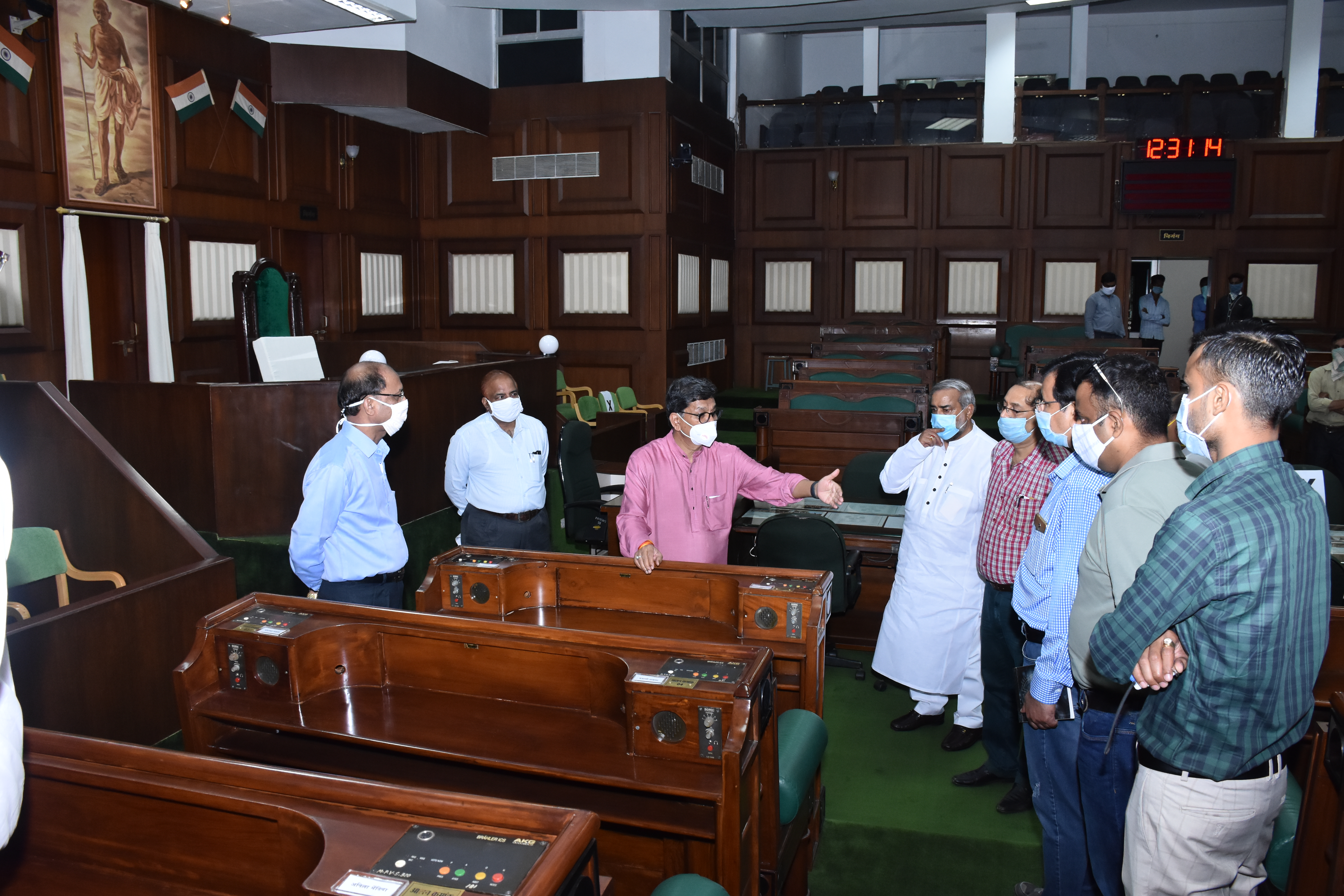 - विधानसभा के मानसून सत्र में होगा सोशल डिस्टेंसिंग के नियमों का पूरी तरह से पालन - मान. विधानसभा अध्यक्ष डॉ. महंत - विधानसभा अध्यक्ष डॉ. महंत ने किया सदन का निरीक्षण एवं आवश्यक व्यवस्थाओं हेतु दिये अधिकारियों को निर्देश |
