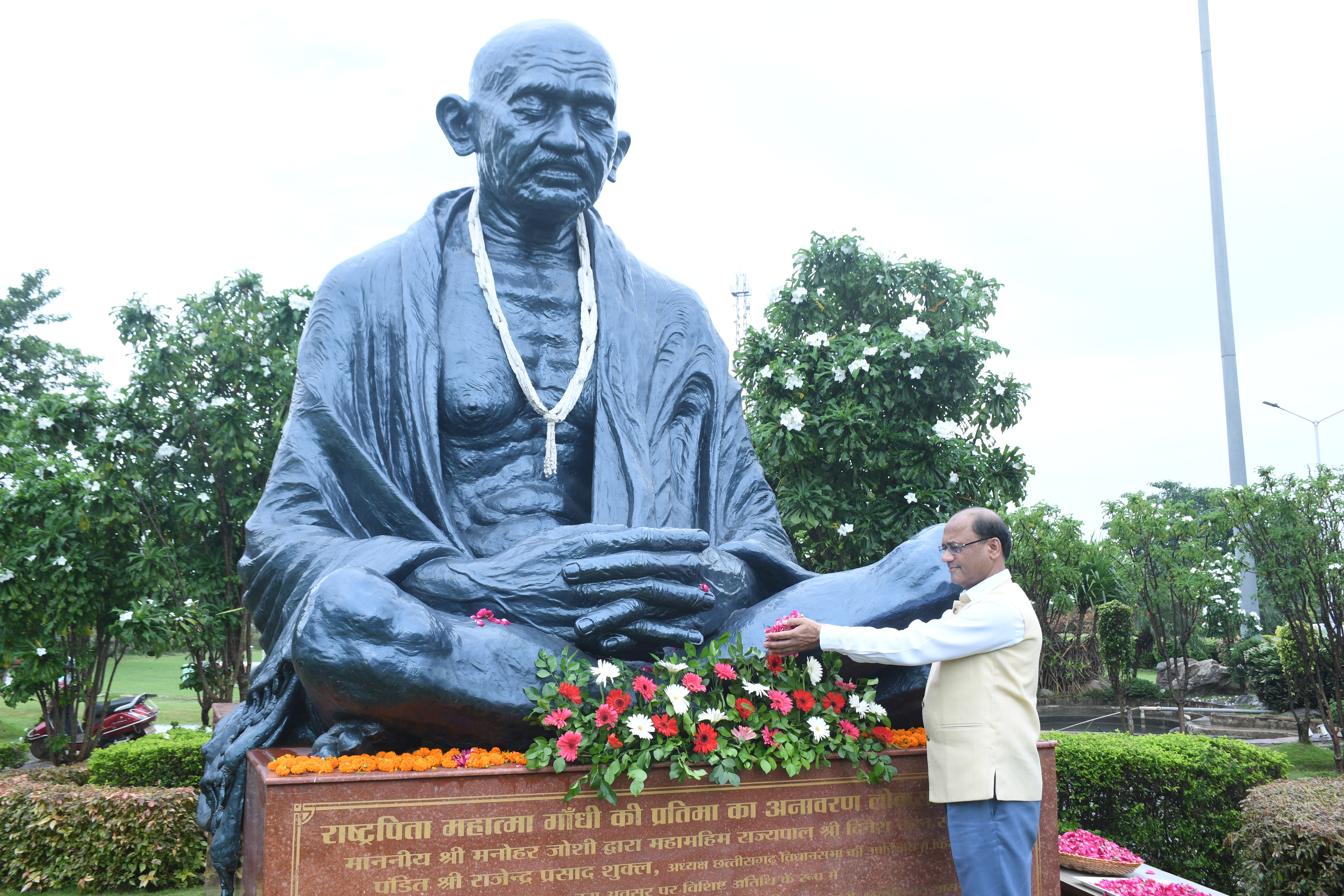 - राष्ट्रपिता महात्मा गांधी एवं पूर्व प्रधानमंत्री श्री लाल बहादुर शास्त्री जी की जयंती के अवसर पर आज विधान सभा परिसर स्थित “गांधी प्रतिमा” के समक्ष एवं विधान सभा स्थित सेंट्रल हाल में गाँधी जी के तैल चित्र पर विधान सभा के प्रमुख सचिव श्री चन्द्रशेखर गंगराड़े एवं सचिवालय के वरिष्ठ अधिकारियों ने राष्ट्रपिता महात्मा गांधी एवं पूर्व प्रधान मंत्री श्री लाल बहादुर शास्त्री के चित्रों पर माल्यार्पण कर उन्हें श्रद्धासुमन अर्पित किये। इस अवसर पर “प्रार्थना सभा” का भी आयोजन किया गया। प्रार्थना सभा में सचिवालय के कर्मचारियों द्वारा महात्मा गांधी के प्रसिद्ध भजन “वैष्णव जन तो तेने कहिए” एवं “रघुपति राघव राजा राम” का गायन किया गया। इस अवसर पर सचिवालय के अधिकारी एवं कर्मचारी भी उपस्थित थे। |