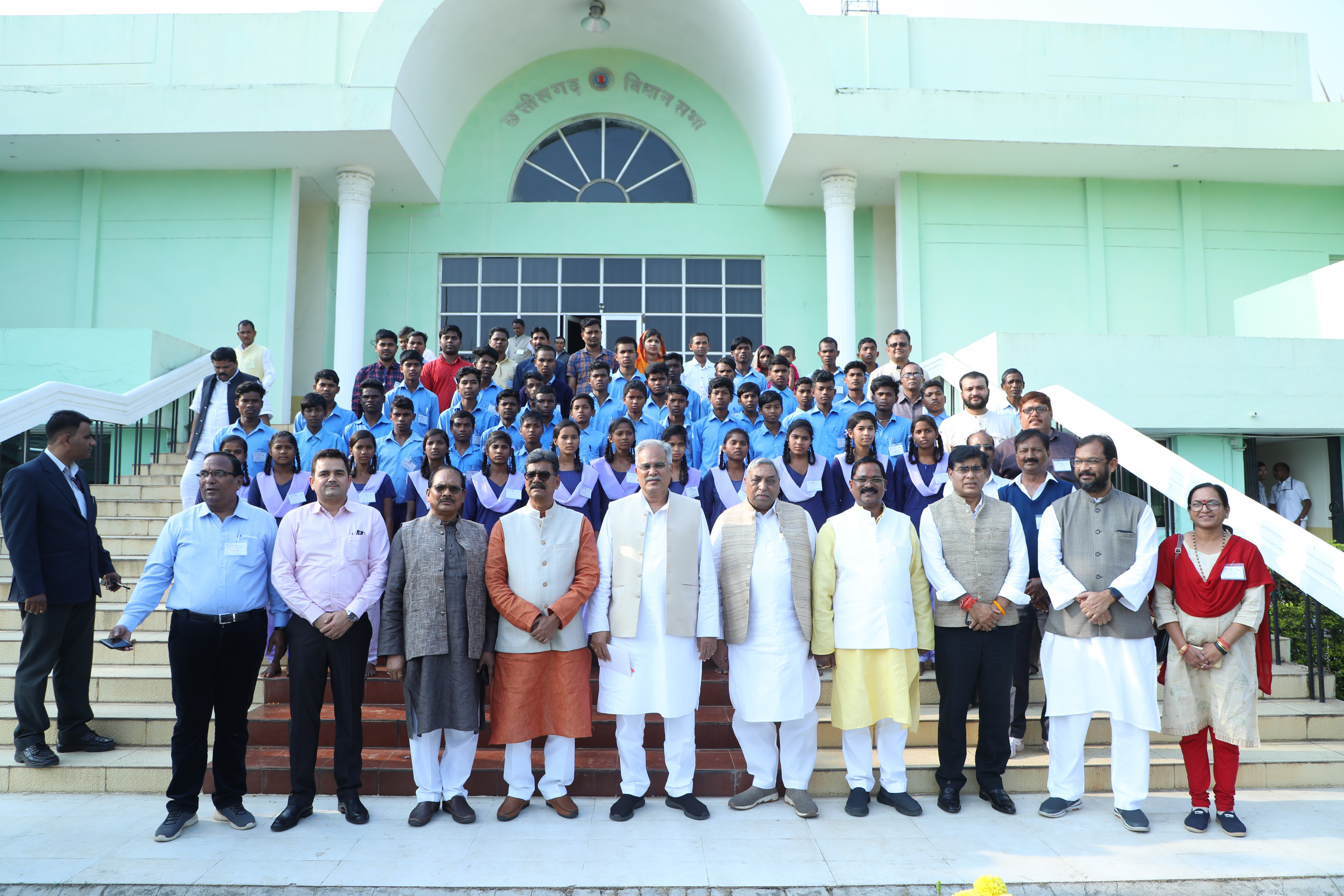 शासकीय उच्चतर माध्यमिक विद्यालय छपरवा विकासखण्ड- लोरमी, जिला- मुंगेली के विद्यार्थियों ने आज विधानसभा की कार्यवाही का अवलोकन किया। कार्यवाही अवलोकन पश्चात् इन्होंने विधानसभा परिसर में मान. विधानसभा अध्यक्ष डॉ. चरणदास महंत एवं मान. मुख्यमंत्री श्री भूपेश बघेल से सौजन्य भेंट की। |