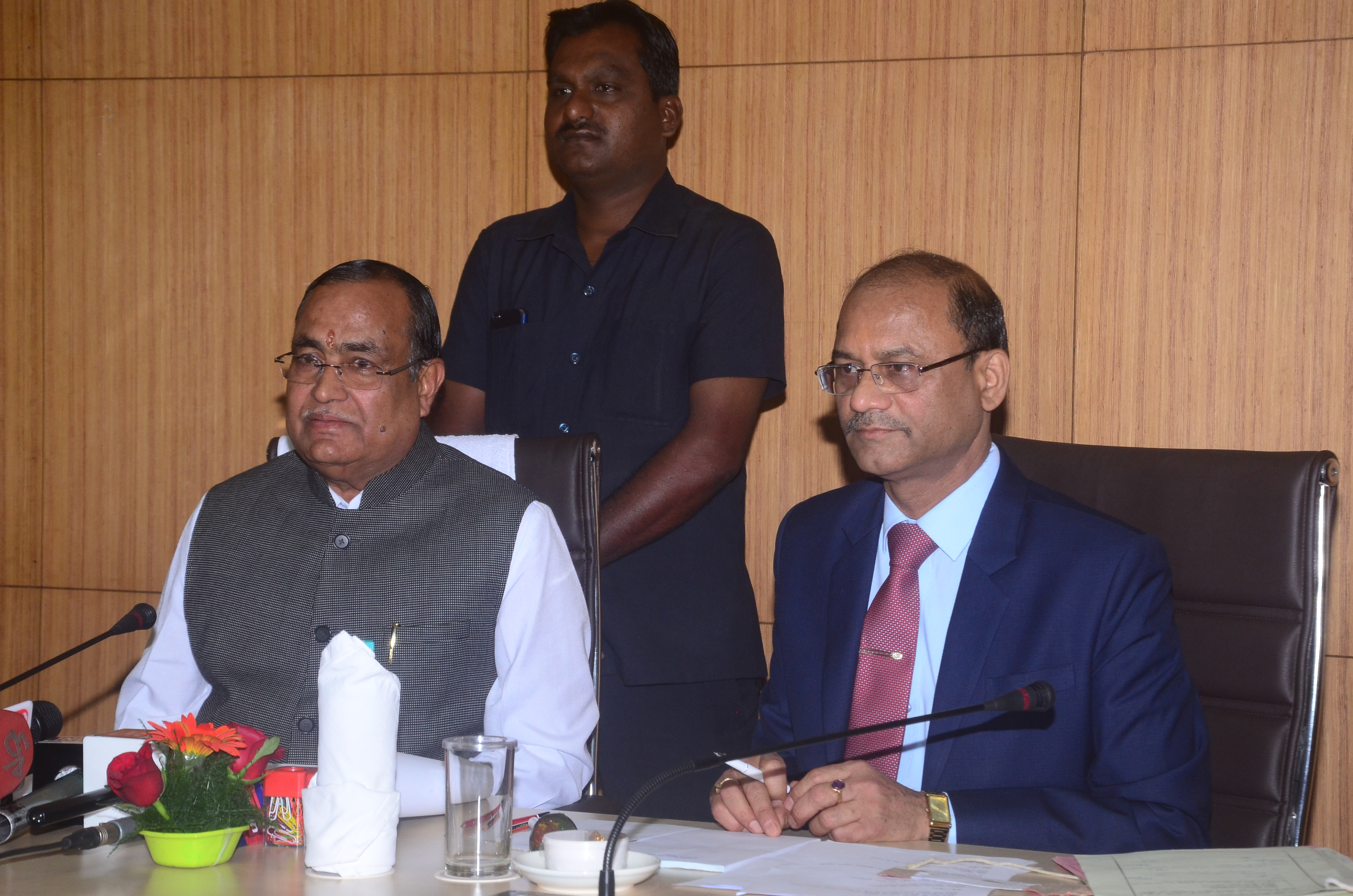 बजट सत्र के अवसर पर विधानसभा अध्यक्ष श्री गौरीशंकर अग्रवाल ने आज विधानसभा स्थित समिति कक्ष में पत्रकारों से चर्चा की। इस अवसर पर विधानसभा सचिव श्री चन्द्रशेखर गंगराड़े भी उपस्थित थे।