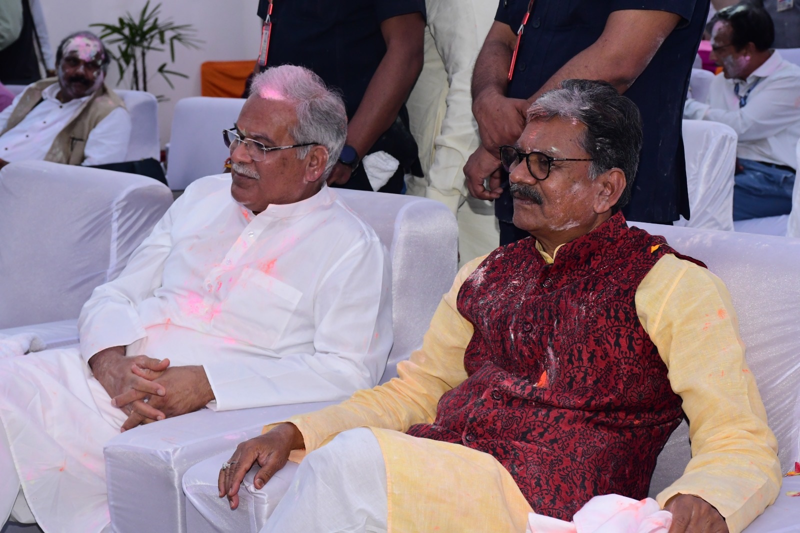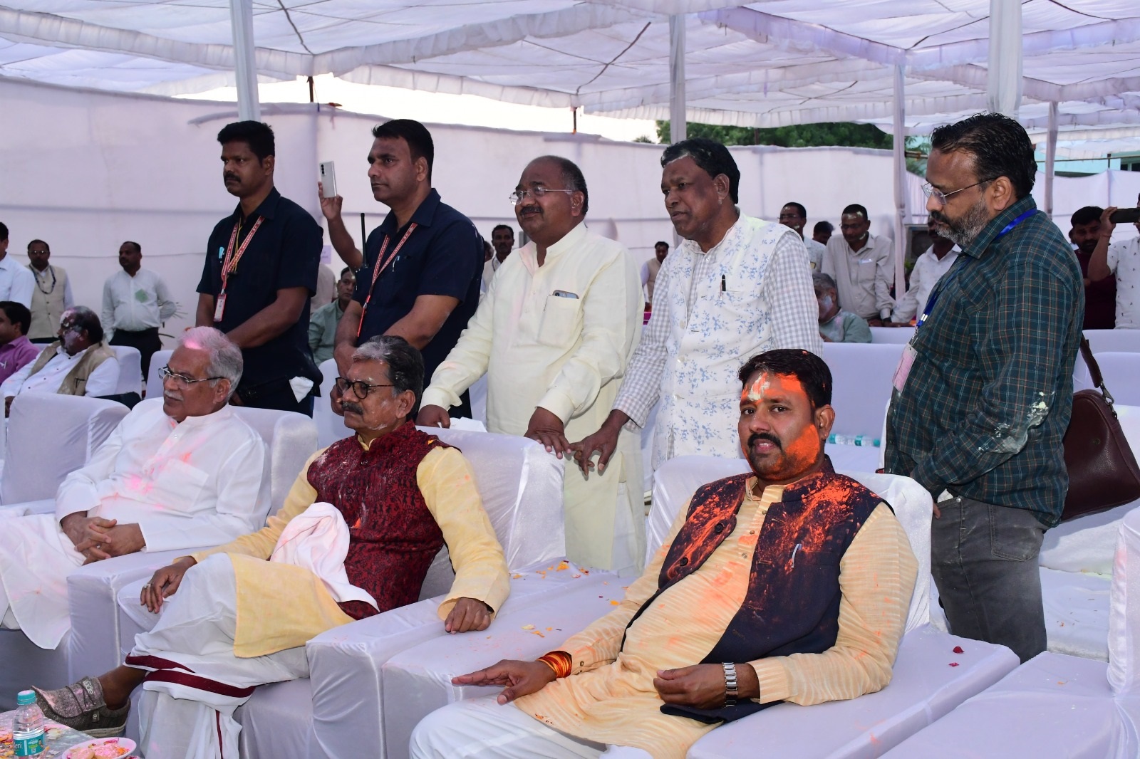 छत्तीसगढ विधानसभा परिसर में विधायक क्लब एवं संस्कृति विभाग के तत्वाधान में आज “होली मिलन समारोह’’ का आयोजन किया गया। कार्यक्रम में विधानसभा अध्यक्ष मान. डॉ. चरण दास महंत, मान. मुख्यमंत्री श्री भूपेश बघेल, मान. मंत्रीगण, मान. सांसद कोरबा श्रीमती ज्योत्सना महंत, मान. संसदीय सचिव, मान. विधायकगण, विधानसभा के सचिव श्री दिनेश शर्मा, मीडिया के प्रतिनिधि एवं विधानसभा सचिवालय के अधिकारी/कर्मचारी उपस्थित थे। “होली मिलन समारोह’’ के अवसर पर आज कार्यक्रम स्थल में ’’फाग गायन एवं हास्य कवि सम्मेलन’’ का आयोजन किया गया। इस फाग गीत दल में श्री डेविड निराला एवं साथियों एवं हास्य व्यंग दल के श्री हेमलाल पटेल एवं साथियों ने अपनी प्रस्तुति से उपस्थित जनों का भरपूर मनोरंजन किया। होली मिलन समारोह में विधानसभा अध्यक्ष मान. डॉ. चरण दास महंत एवं मान. मुख्यमंत्री श्री भूपेश बघेल ने प्रदेश वासियों को होली की बधाई एवं शुभकामनाएं दी। मान. उपाध्यक्ष श्री संत राम नेताम, मान.सदस्य श्री कुँवर निषाद, मान. श्रीमती रश्मि सिंह, मान. सुश्री शकुंतला साहू, मान. सुश्री संगीता सिन्हा, मान. श्री राम कुमार यादव, मान. श्री चंद्रदेव राय, मान. श्री केशव चंद्रा, मान. श्री प्रमोद शर्मा, मान. श्री गुलाब कमरो ने होली के उमंग एवं उल्लास में अपने नृत्य एवं गायन के माध्यम से अपनी विभिन्न प्रस्तुतियां दी। मान. मंत्रियों, मान. संसदीय सचिव, मान. विधायकों, एवं उपस्थितजनों ने एक दूसरे को रंग एवं गुलाल लगाकर होली की बधाई एवं शुभकामनाएं दी। अंत में विधान सभा सचिव श्री दिनेश शर्मा ने सभी के प्रति आभार व्यक्त किया। |