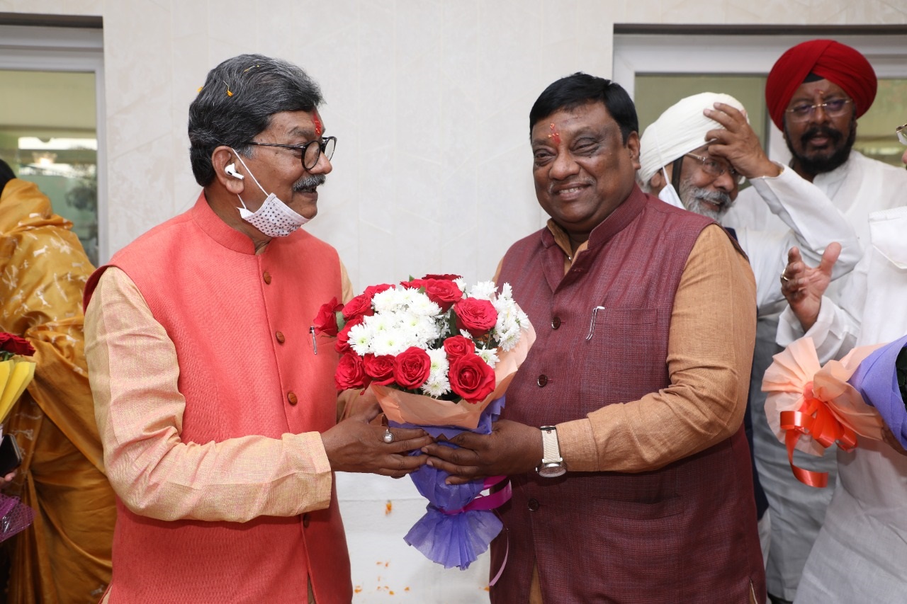-छत्तीसगढ़ विधान सभा अध्यक्ष डॉ. चरणदास महंत ने आज विधान सभा परिसर स्थित अपने नवनिर्मित कार्यालय-कक्ष में पूजा-अर्चना कर प्रवेश किया। इस अवसर पर माननीय सांसद श्रीमती ज्योत्सना महंत, स्थानीय विधायक श्री सत्यनारायण शर्मा, श्री बृजमोहन अग्रवाल, श्री कुलदीप जुनेजा, श्रीमती अनिता योगेन्द्र शर्मा, श्री नारायण प्रसाद चंदेल, पूर्व विधायक, निगम/ मंडल के अध्यक्ष, विधान सभा के प्रमुख सचिव श्री चन्द्र शेखर गंगराडे़ एवं सचिव विधान सभा श्री दिनेश शर्मा ने उन्हे पुष्प गुच्छ भेंट कर अपनी शुभकामनाएं दी। इस अवसर पर विधान सभा सचिवालय एवं लोक-निर्माण विभाग के वरिष्ठ अधिकारी गण भी उपस्थित थे । |