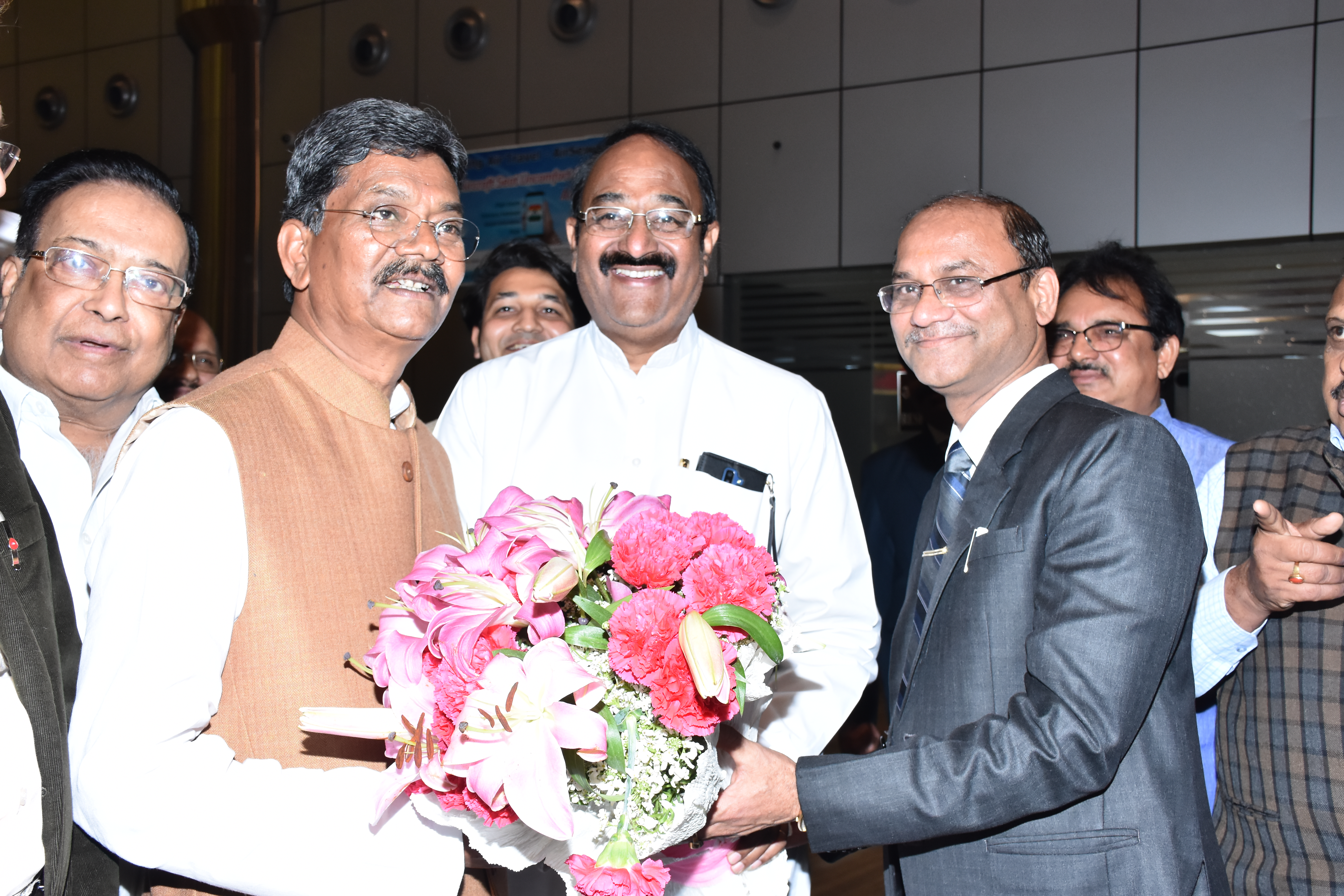 माननीय श्री नर्मदा प्रसाद प्रजापति, अध्यक्ष मध्यप्रदेश विधानसभा 'प्रबोधन कार्यक्रम' में सम्मिलित होने के लिए आज रायपुर पहुंचे। स्वामी विवेकानंद एयरपोर्ट रायपुर में उनका स्वागत विधानसभा अध्यक्ष मान. डॉ. चरणदास महंत तथा विधानसभा सचिव श्री चन्द्रशेखर गंगराड़े ने किया। |