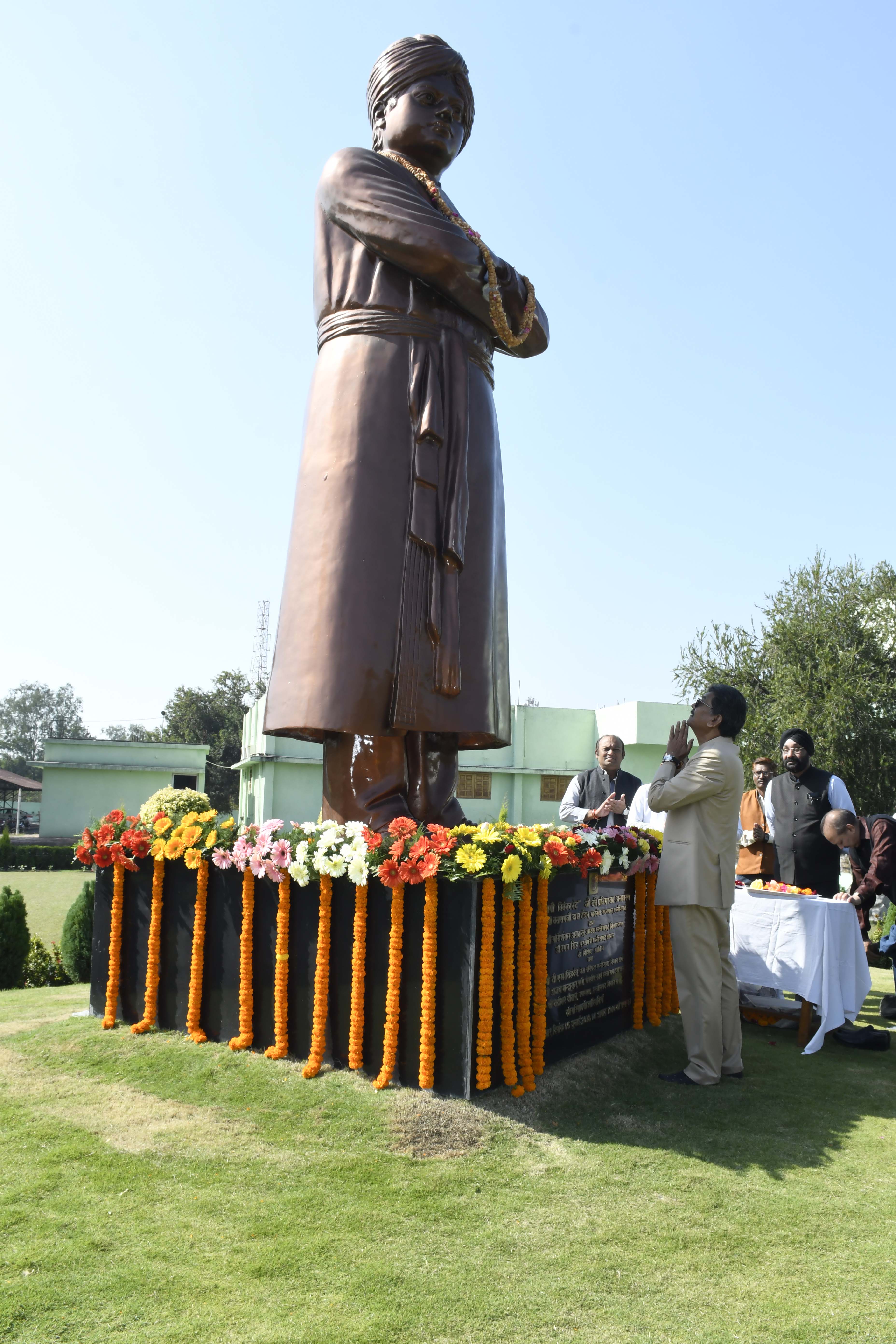 - स्वामी विवेकानंद जी की जयंती पर विधान सभा अध्यक्ष डॉ. चरणदास महंत ने विधान सभा परिसर स्थित स्वामी विवेकानंद जी की प्रतिमा पर पुष्पाजंलि अर्पित की |