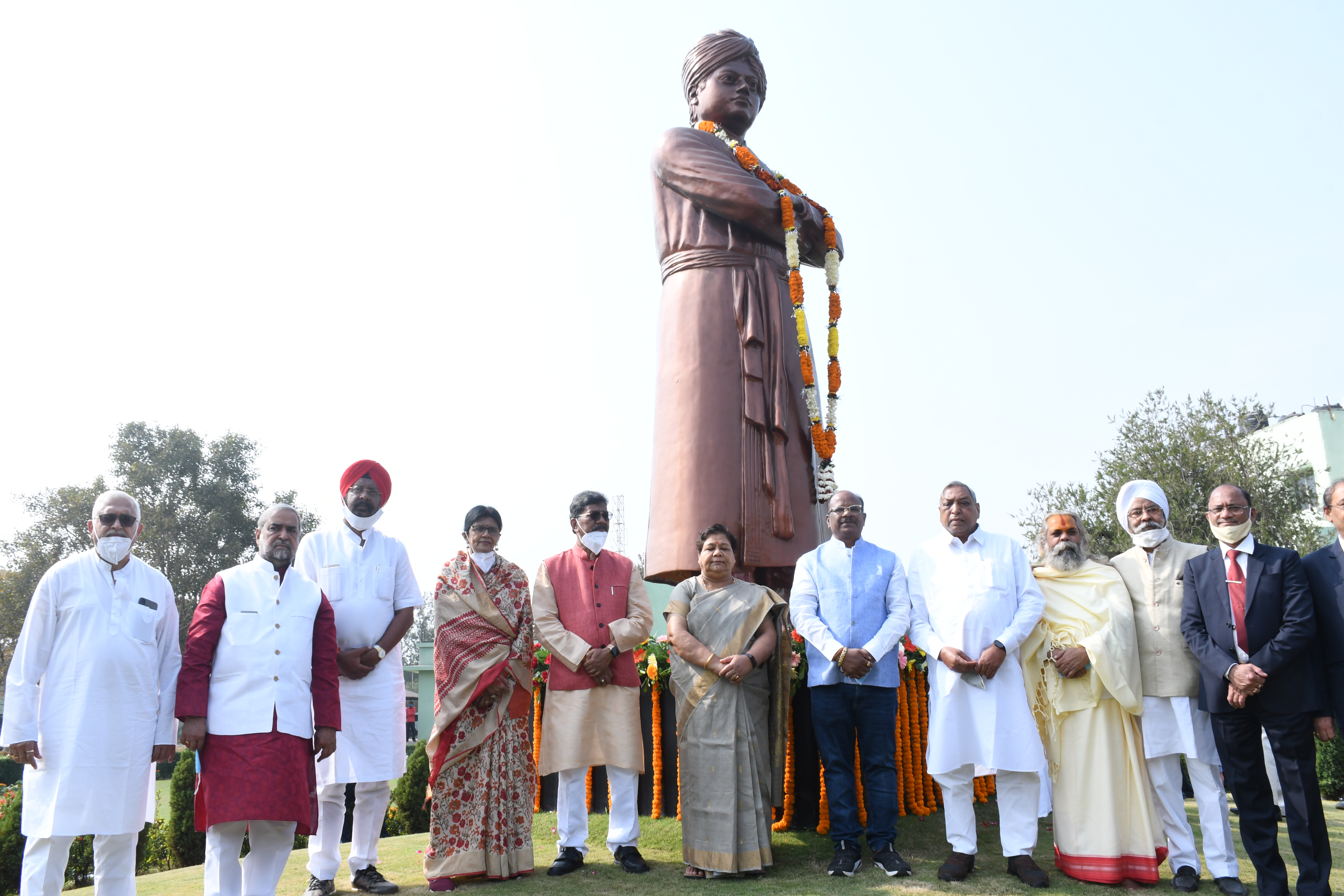 -मान. राज्यपाल महोदया एवं मान. विधान सभा अध्यक्ष ने विधान सभा परिसर स्थित स्वामी विवेकानंद जी की प्रतिमा पर पुष्पांजलि अर्पित की. |