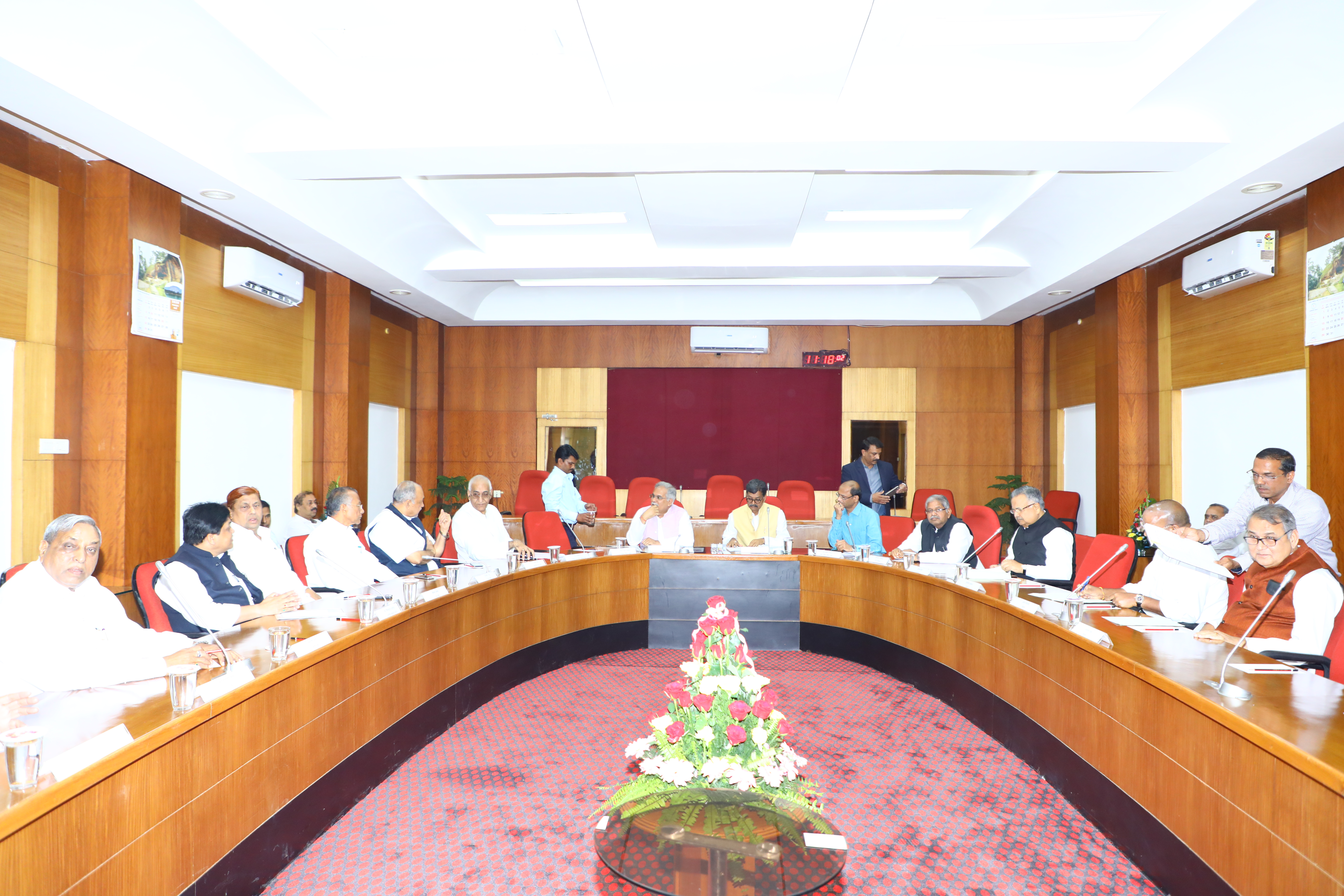 छत्तीसगढ़ विधान सभा की कार्यमंत्रणा समिति की बैठक आज विधान सभा परिसर स्थित मुख्य समिति कक्ष में विधान सभा अध्यक्ष मान. डॉ. चरणदास महंत की अध्यक्षता में सम्पन्न हुई। बैठक में मान. मुख्यमंत्री श्री भूपेश बघेल, मान. नेता प्रतिपक्ष श्री धरमलाल कौशिक, मान. संसदीय कार्यमंत्री श्री रविन्द्र चौबे, मान. स्वास्थ्य मंत्री श्री टी.एस. सिंहदेव, मान. लोक निर्माण मंत्री श्री ताम्रध्वज साहू, मान. वन मंत्री श्री मोहम्मद अकबर, मान. नगरीय प्रशासन मंत्री डॉ. शिवकुमार डहरिया, मान. विधायकगण, मुख्य सचिव, छत्तीसगढ़ शासन, श्री आर.पी. मंडल, विधान सभा के प्रमुख सचिव श्री चन्द्र शेखर गंगराड़े एवं छत्तीसगढ़ शासन के वरिष्ठ अधिकारी उपस्थित थे। |