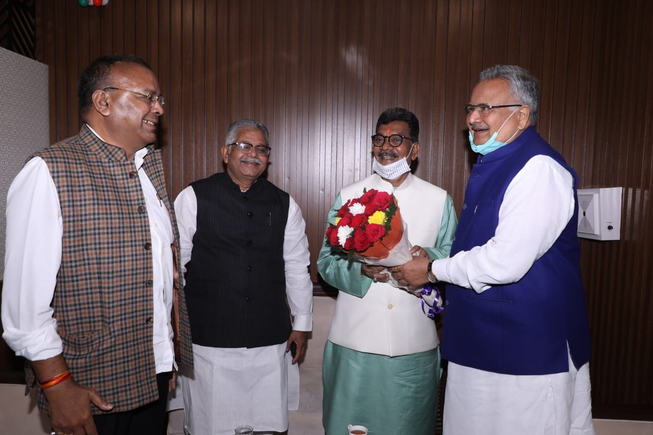 -छत्तीसगढ़ विधानसभा अध्यक्ष डॉ. चरणदास महंत के जन्मदिन के अवसर पर आज विधान सभा परिसर में मान. मुख्यमंत्री श्री भूपेश बघेल, मान. मंत्रीगण, मान. नेता प्रतिपक्ष, मान. विधायकों एवं विधान सभा के प्रमुख सचिव श्री चंद्र शेखर गंगराड़े ने पुष्प गुच्छ भेंट कर उन्हें जन्मदिन की बधाई एवं शुभकामनायें दी। |