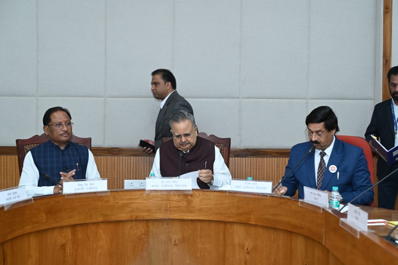 -छत्तीसगढ़ के नवीन विधान सभा में आज कार्यमंत्रणा समिति की बैठक नवीन विधान सभा परिसर स्थित समिति कक्ष में माननीय विधान सभा अध्यक्ष डॉ. रमन सिंह के सभापतित्व में संपन्न हुई। बैठक में मान. मुख्यमंत्री श्री विष्णु देव साय, मान. उपमुख्यमंत्री श्री अरूण साव, मान. संसदीय कार्य मंत्री श्री केदार कश्यप, मान. वित्तमंत्री श्री ओ.पी. चौधरी, मान. आदिम जाति विकास मंत्री श्री रामविचार नेताम, मान. विधायकगण, मुख्य सचिव, छत्तीसगढ़ शासन, श्री विकासशील एवं विधान सभा सचिव श्री दिनेश शर्मा उपस्थित थे। |
