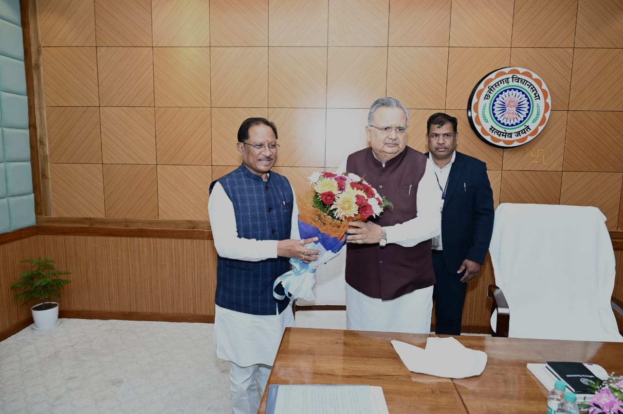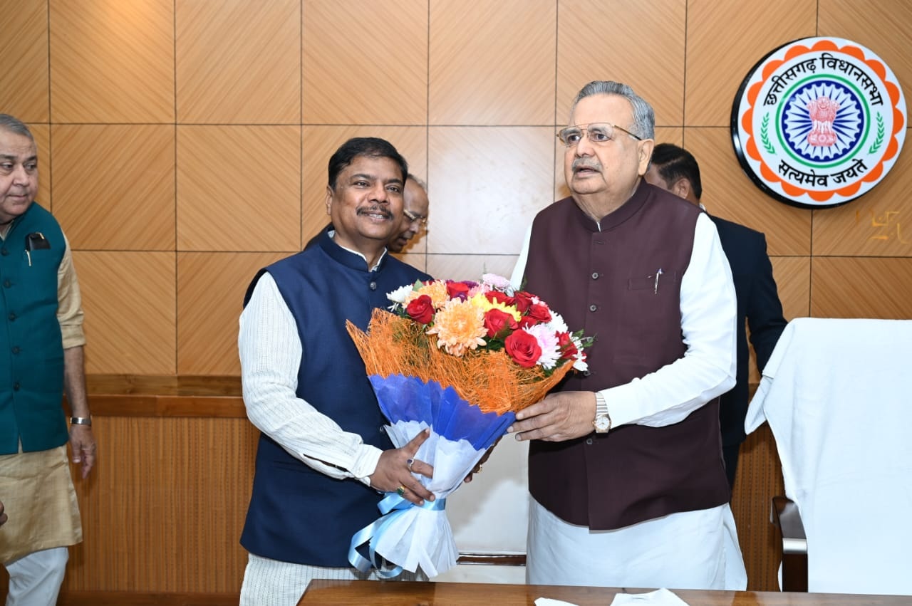 -छत्तीसगढ़ विधान सभा के स्थापना दिवस एवं नवीन विधानसभा भवन में सत्र की प्रथम बैठक होने के अवसर पर डॉ रमन सिंह, मान. विधान सभा अध्यक्ष को मान मुख्यमंत्री,मान मंत्री गण एवं मान विधायकों ने बधाई एवं शुभकामनाएं दी।