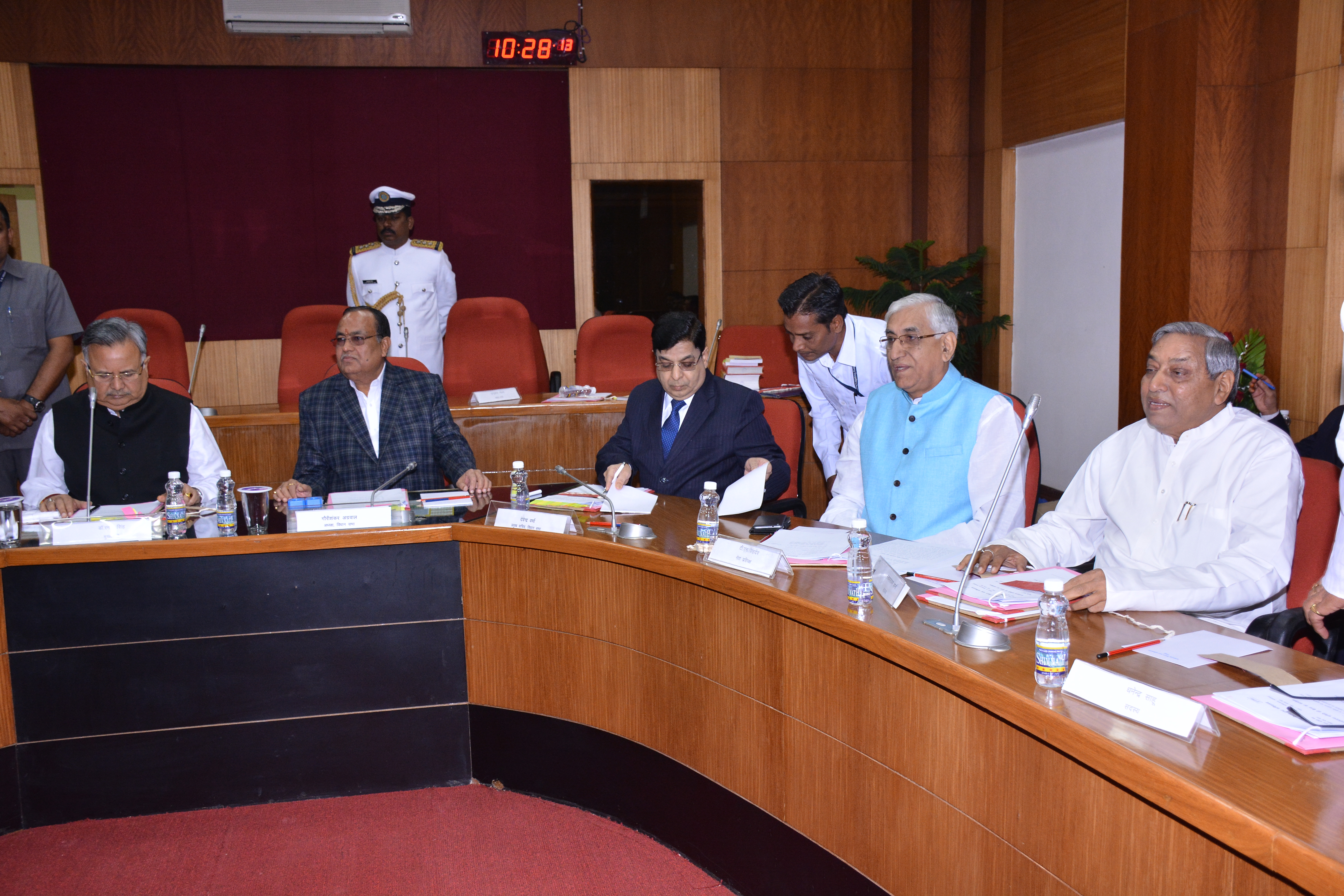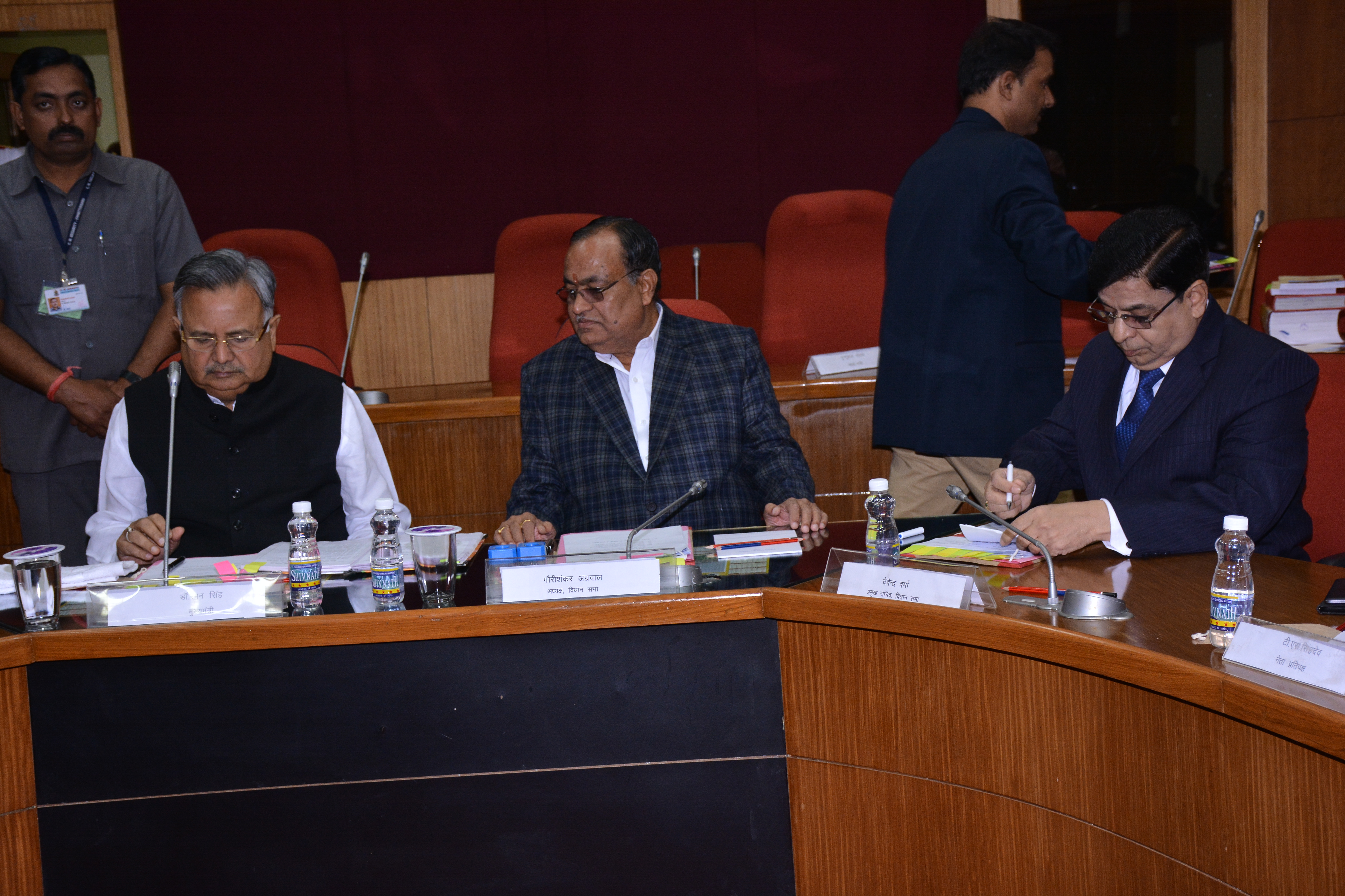 छत्तीसगढ़ विधानसभा की कार्यमंत्रणा समिति की बैठक आज विधानसभा स्थित मुख्य समिति कक्ष में सम्पन्न हुई। बैठक में विधानसभा अध्यक्ष मान. श्री गौरीशंकर अग्रवाल, मान. मुख्यमंत्री डॉ. रमन सिंह, मान. नेता प्रतिपक्ष श्री टी.एस. सिंहदेव, मान. संसदीय कार्यमंत्री श्री अजय चन्द्राकर, मान. राजस्व एवं उच्च शिक्षा मंत्री श्री प्रेमप्रकाश पाण्डेय, मान. कृषि एवं जल संसाधन मंत्री श्री बृजमोहन अग्रवाल, मान. गृह मंत्री श्री रामसेवक पैकरा, मान. विधायकगण एवं विधानसभा के प्रमुख सचिव श्री देवेन्द्र वर्मा उपस्थित थे। |