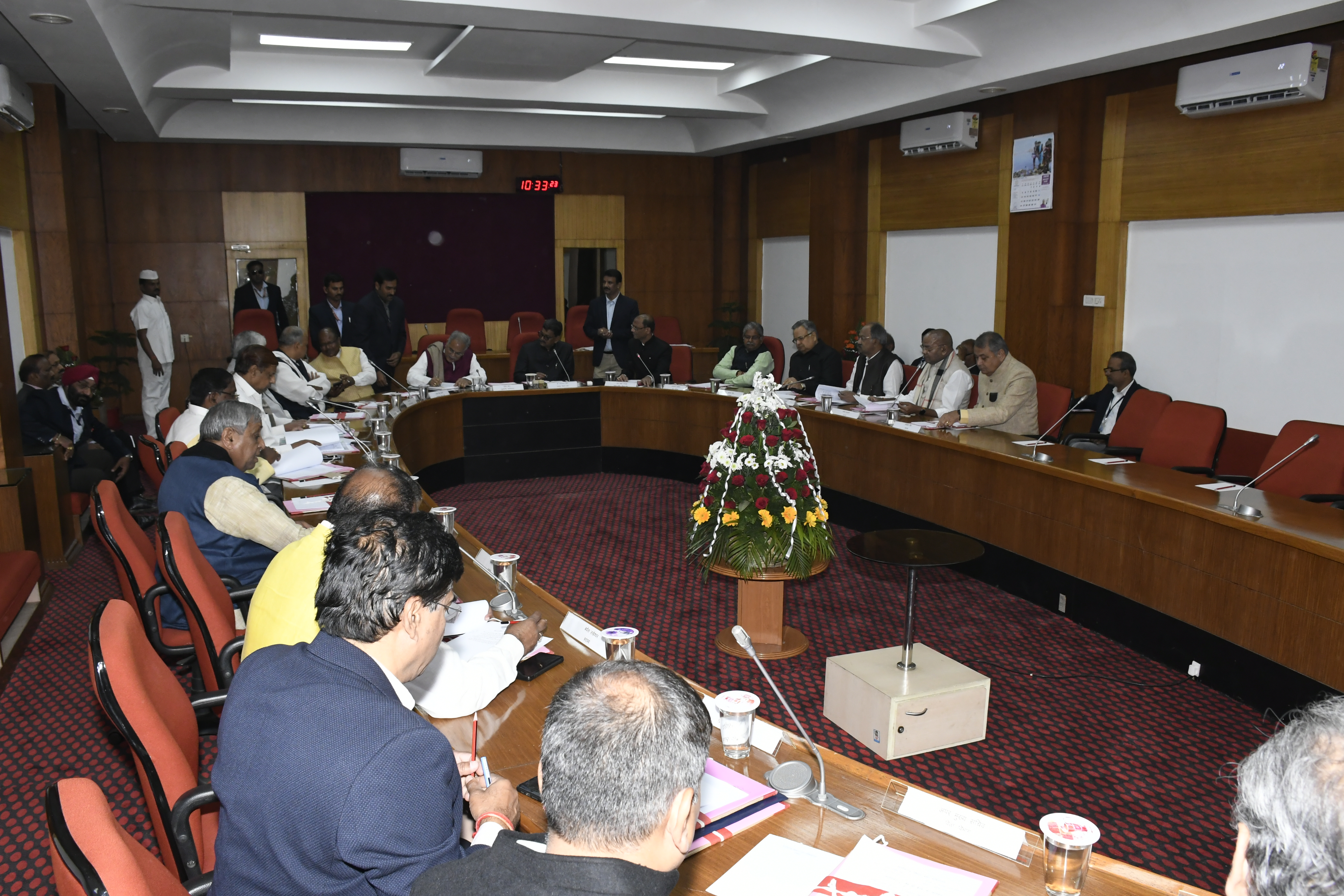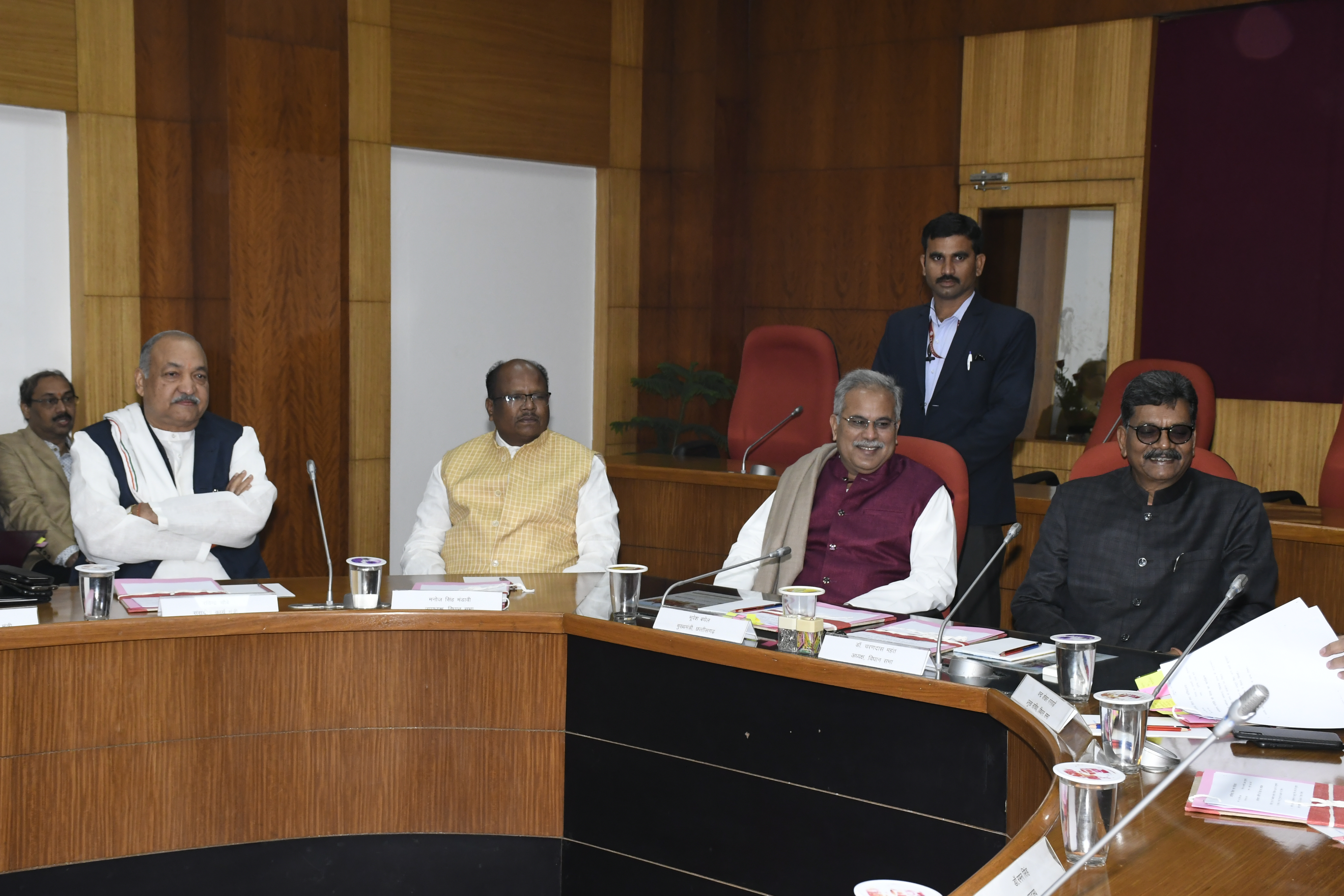 - छत्तीसगढ़ विधान सभा के दिनांक 16 जनवरी 2020 को पंचम विधान सभा के पंचम सत्र के लिए छत्तीसगढ़ विधान सभा की कार्यमंत्रणा समिति की बैठक आज पूर्वाह्न विधान सभा परिसर स्थित मुख्य समिति कक्ष में विधान सभा अध्यक्ष मान. डॉ. चरणदास महंत की अध्यक्षता में सम्पन्न हुई। बैठक में मान. मुख्यमंत्री श्री भूपेश बघेल, मान. संसदीय कार्यमंत्री श्री रविन्द्र चौबे, मान. नेता प्रतिपक्ष श्री धरमलाल कौशिक, मान. उपाध्यक्ष, छत्तीसगढ़ विधान सभा श्री मनोज सिंह मंडावी, मान. पंचायत एवं ग्रामीण विकास मंत्री श्री टी.एस. सिंहदेव, मान. गृह मंत्री श्री ताम्रध्वज साहू, मान. वन मंत्री श्री मोहम्मद अकबर, मान. खाद्य एवं नागरिक आपूर्ति मंत्री श्री अमरजीत भगत, मान. विधायकगण, मुख्य सचिव, छत्तीसगढ़ शासन, श्री आर.पी. मंडल, विधान सभा के प्रमुख सचिव श्री चन्द्रशेखर गंगराड़े एवं शासन के वरिष्ठ अधिकारी भी उपस्थित थे। |