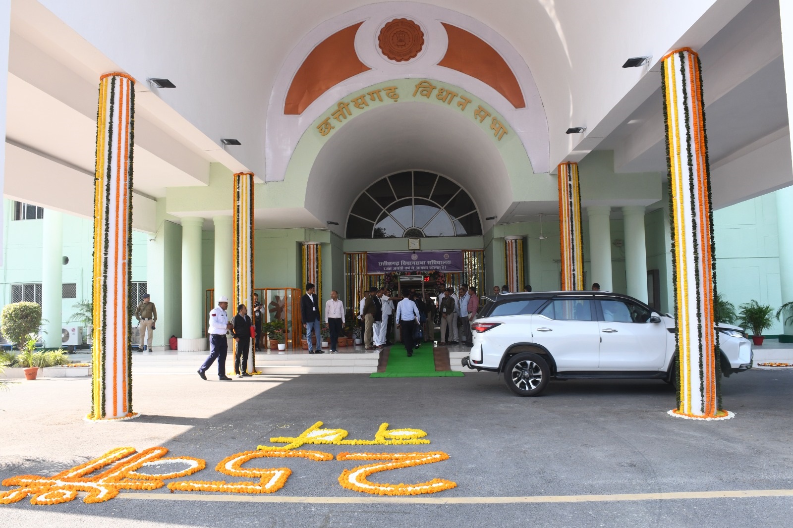 -विधान सभा का रजत जयंती वर्ष दिनांक 14 दिसम्बर, 2024 से 14 दिसम्बर, 2025 तक मनाया जा रहा है । इस अवसर पर विधान सभा सत्र के अवसर पर आज विधानसभा परिसर को फूल मालाओं एवं रंगोली से आकर्षक तरीके से सजाया गया है । विधान सभा परिसर में लोक-नर्तक दलों ने नृत्यों से मान. सदस्यों का स्वागत किया । |