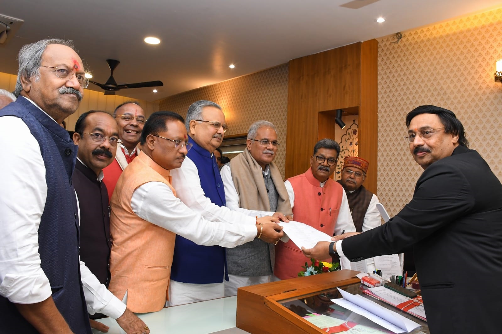 -छत्तीसगढ़ विधान सभा अध्यक्ष पद के लिए पूर्व मुख्यमंत्री डॉ. रमन सिंह ने नाम निर्देशन पत्र (नामांकन) दाखिल किए |