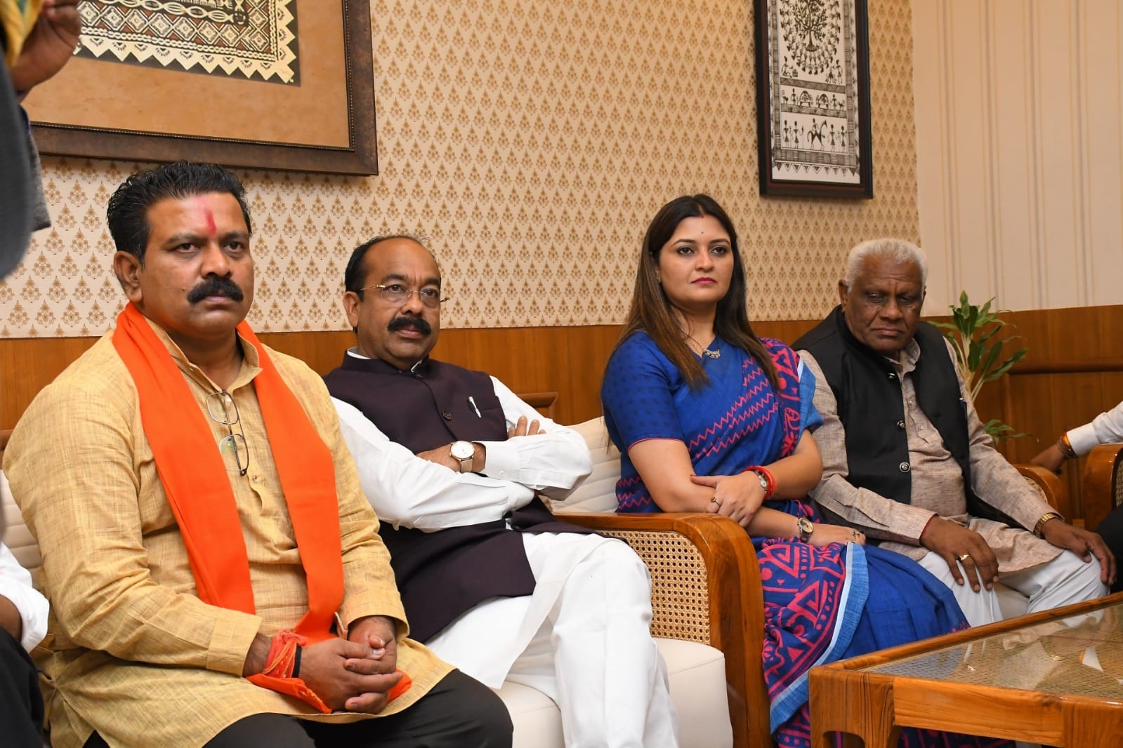 -छत्तीसगढ़ विधान सभा अध्यक्ष पद के लिए पूर्व मुख्यमंत्री एवं राजनांदगांव के निर्वाचित मान. विधायक डॉ. रमन सिंह ने आज विधान सभा पहुंचकर विधान सभा सचिव श्री दिनेश शर्मा के कक्ष में विधान सभा अध्यक्ष पद के लिए अपना नाम निर्देशन पत्र (नामांकन) दाखिल किया। इस अवसर पर मान. मुख्यमंत्री श्री विष्णु देव साय, मान. उपमुख्यमंत्री श्री अरूण साव, मान. उपमुख्यमंत्री श्री विजय शर्मा, विधानसभा अध्यक्ष मान. डॉ. चरणदास महंत पूर्व मुख्यमंत्री मान. श्री भूपेश बघेल एवं मान. विधायकगण उपस्थित थे। |
