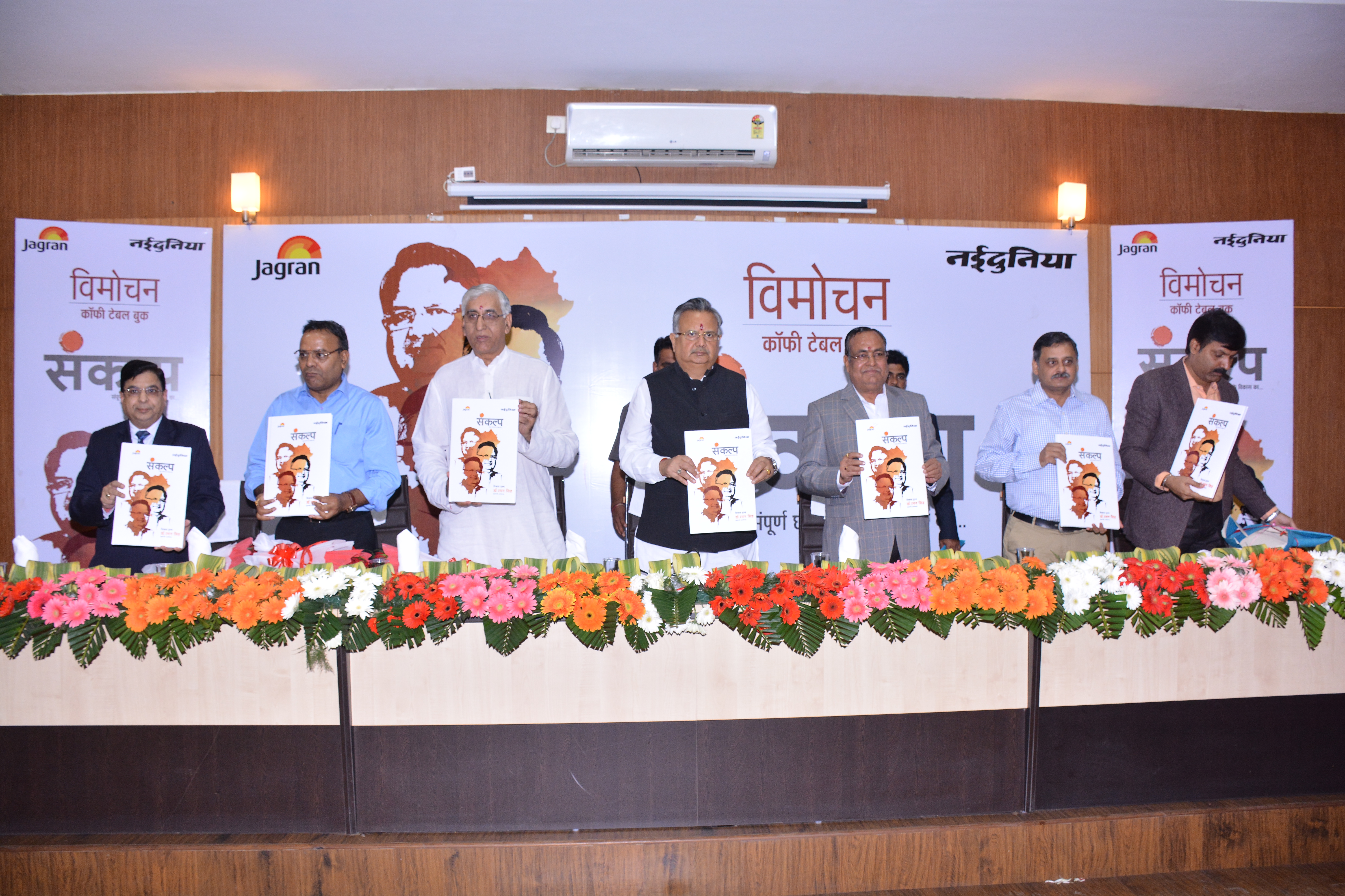 छत्तीसगढ़ विधानसभा परिसर स्थित नवीन समिति कक्ष में आज नईदुनिया (जागरण) समूह द्वारा मान. मुख्यमंत्री डॉ. रमन सिंह के जीवन पर आधारित "संकल्प संपूर्ण छत्तीसगढ़ के विकास का" काफी टेबल बुक का विमोचन विधानसभा अध्यक्ष मान. श्री गौरीशंकर अग्रवाल, मान. मुख्यमंत्री डॉ. रमन सिंह, मान. नेता प्रतिपक्ष श्री टी.एस. सिंहदेव, मान. संसदीय कार्यमंत्री श्री अजय चन्द्राकर ने किया। इस अवसर पर मंत्रि-परिषद के मान. सदस्य, मान. संसदीय सचिव, मान. विधायकगण एवं विधानसभा के प्रमुख सचिव श्री देवेन्द्र वर्मा भी उपस्थित थे। |
