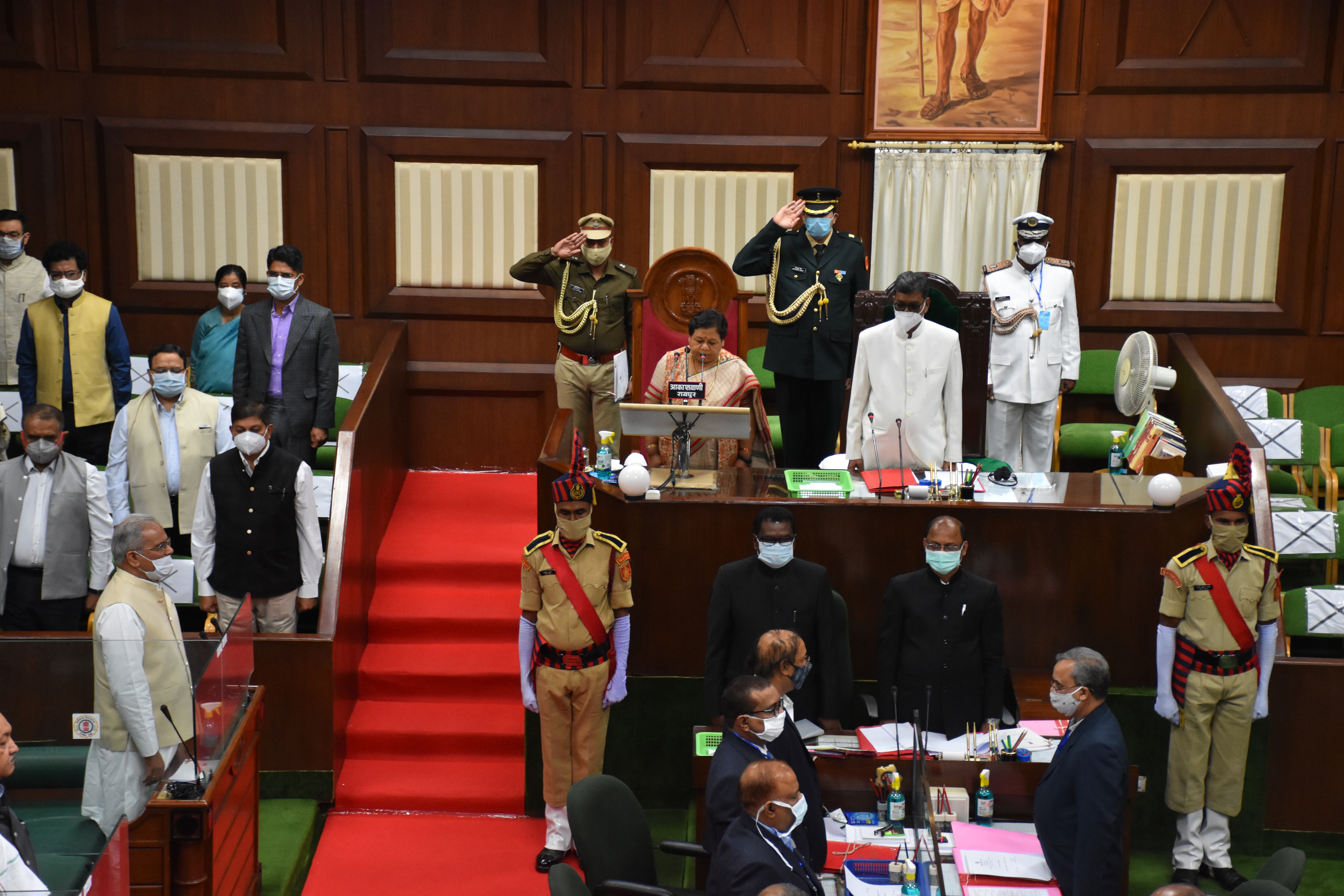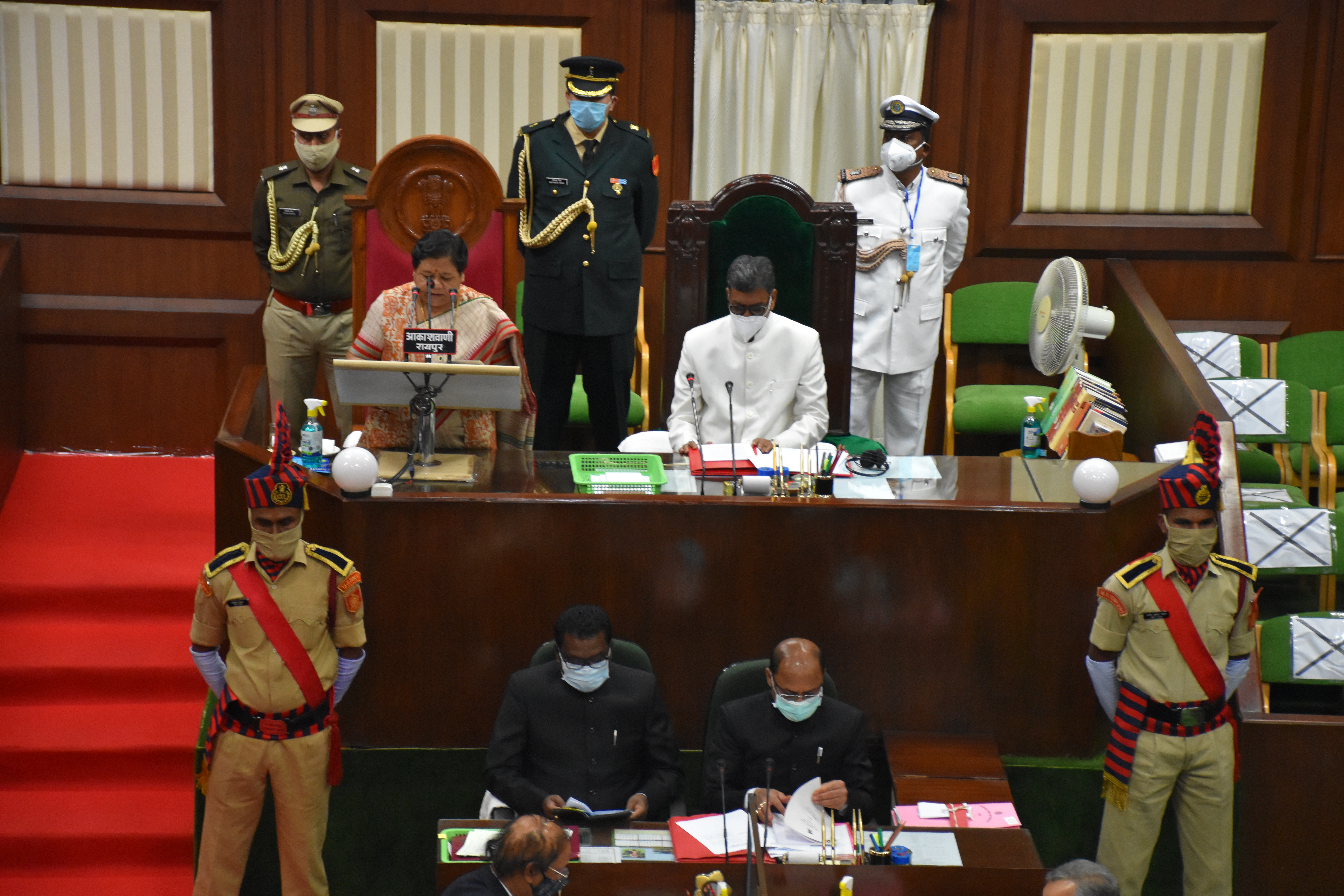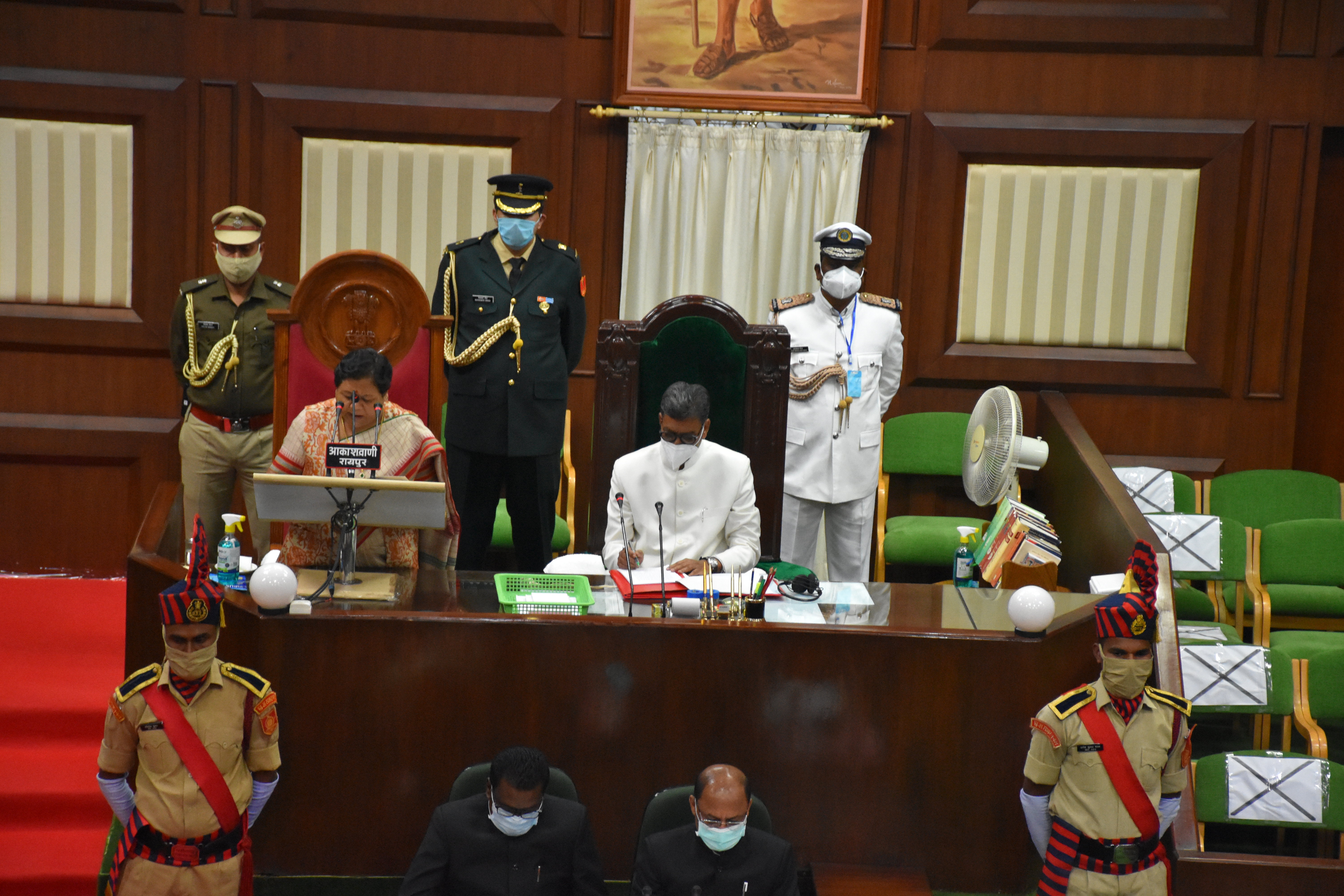 - छत्तीसगढ़ विधानसभा के बजट सत्र के प्रथम दिवस पर आज मान. राज्यपाल महोदया का विधानसभा परिसर में आगमन एवं सदन में अभिभाषण