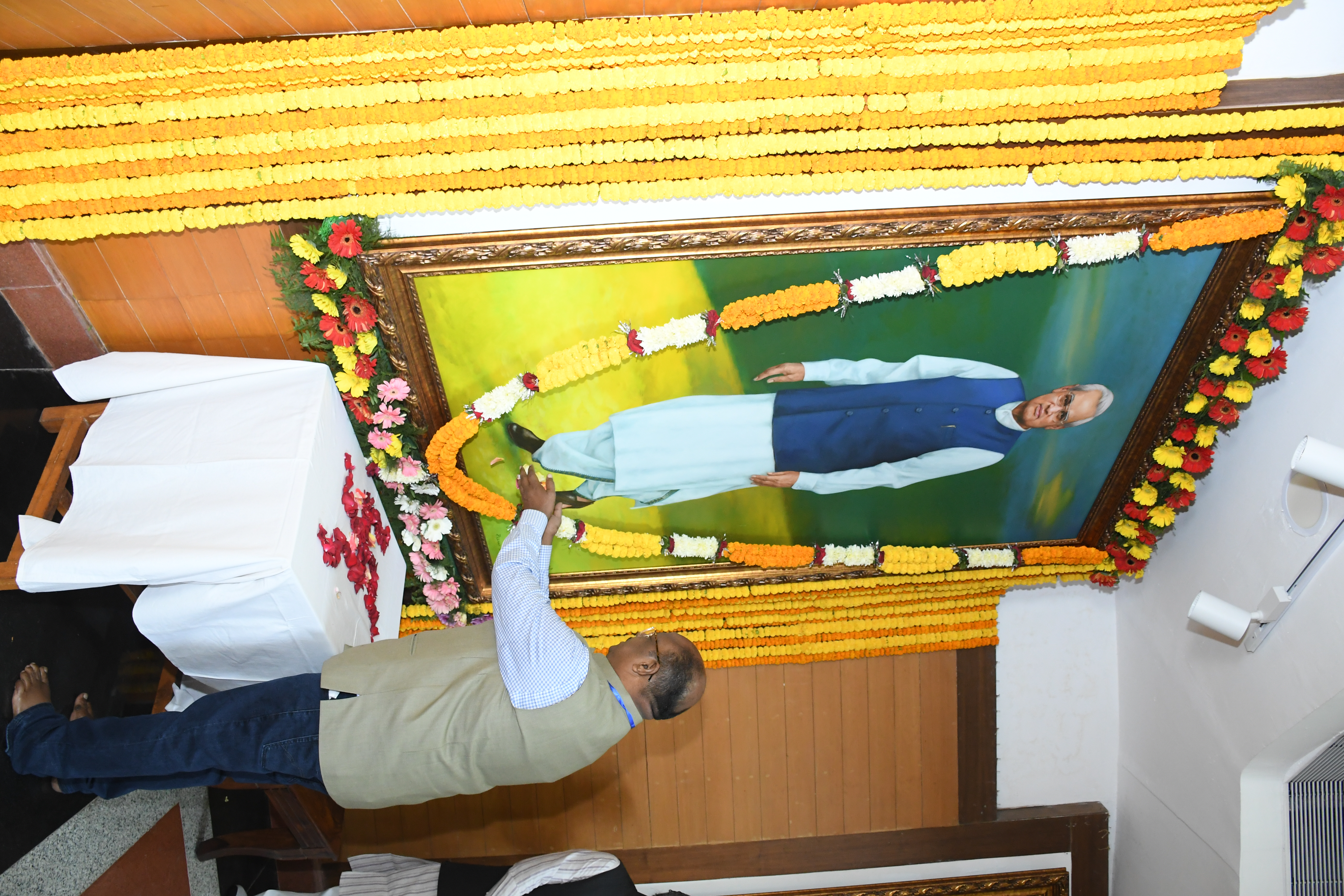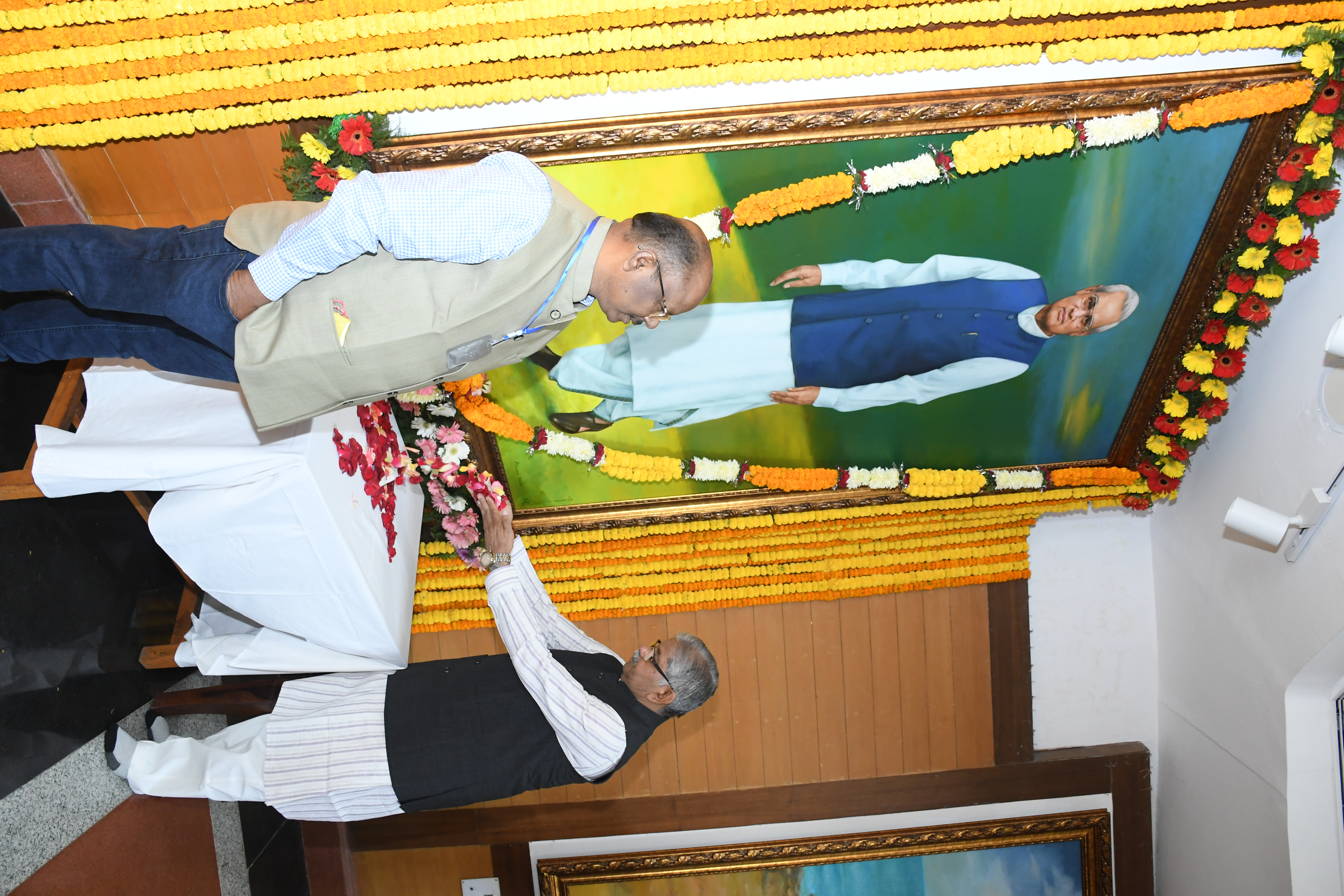 चित्र पर पुष्पांजलि अर्पित कर उन्हें श्रद्धांजलि अर्पित की। |