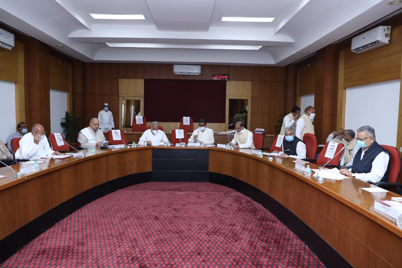 छत्तीसगढ़ विधान सभा की कार्यमंत्रणा समिति की बैठक आज विधान सभा परिसर स्थित मुख्य समिति-कक्ष में विधान सभा अध्यक्ष मान. डॉ. चरणदास महंत की अध्यक्षता में संपन्न हुई। बैठक में मान. मुख्यमंत्री श्री भूपेश बघेल, मान. नेता प्रतिपक्ष श्री धरमलाल कौशिक, मान. संसदीय कार्यमंत्री श्री रविन्द्र चौबे, मान. लोक निर्माण मंत्री श्री ताम्रध्वज साहू, मान. पंचायत एवं ग्रामीण विकास मंत्री श्री टी.एस. सिंहदेव, मान. वन मंत्री श्री मोहम्मद अकबर, मान. नगरीय प्रशासन मंत्री डॉ. शिवकुमार डहरिया, मान. विधायकगण, मुख्य सचिव, छत्तीसगढ़ शासन, श्री अमिताभ जैन, विधान सभा के प्रमुख सचिव श्री चन्द्र शेखर गंगराडे़ एवं छत्तीसगढ़ शासन के वरिष्ठ अधिकारी उपस्थित थे। |