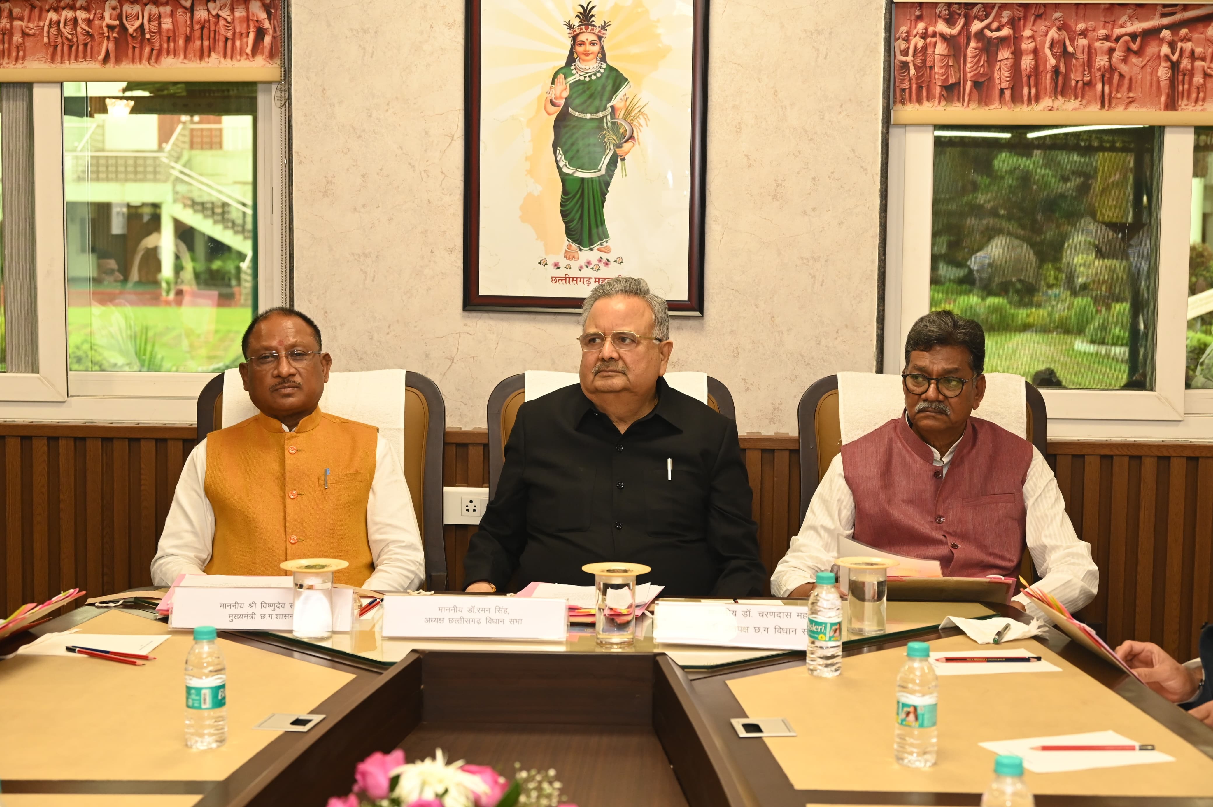 मान. विधायकों एवं पूर्व विधायकों की सुविधाओं के संबंध में आज विधान सभा अध्यक्ष डॉ. रमन सिंह की अध्यक्षता में एक उच्च स्तरीय समिति की बैठक सम्पन्न हुई । बैठक में मान. मुख्यमंत्री श्री विष्णु देव साय, मान. नेता प्रतिपक्ष डॉ. चरणदास महंत, मान. उप मुख्यमंत्री श्री अरूण साव, मान. संसदीय कार्य मंत्री श्री केदार कश्यप, मान. वित्तमंत्री श्री ओ.पी. चौधरी, मान. पूर्व मुख्यमंत्री श्री भूपेश बघेल, मान. सदस्य श्री अजय चन्द्राकर, मुख्य सचिव, छत्तीसगढ़ शासन, श्री अमिताभ जैन, विधान सभा सचिव श्री दिनेश शर्मा एवं छत्तीसगढ़ शासन के वरिष्ठ अधिकारीगण उपस्थित थे । |