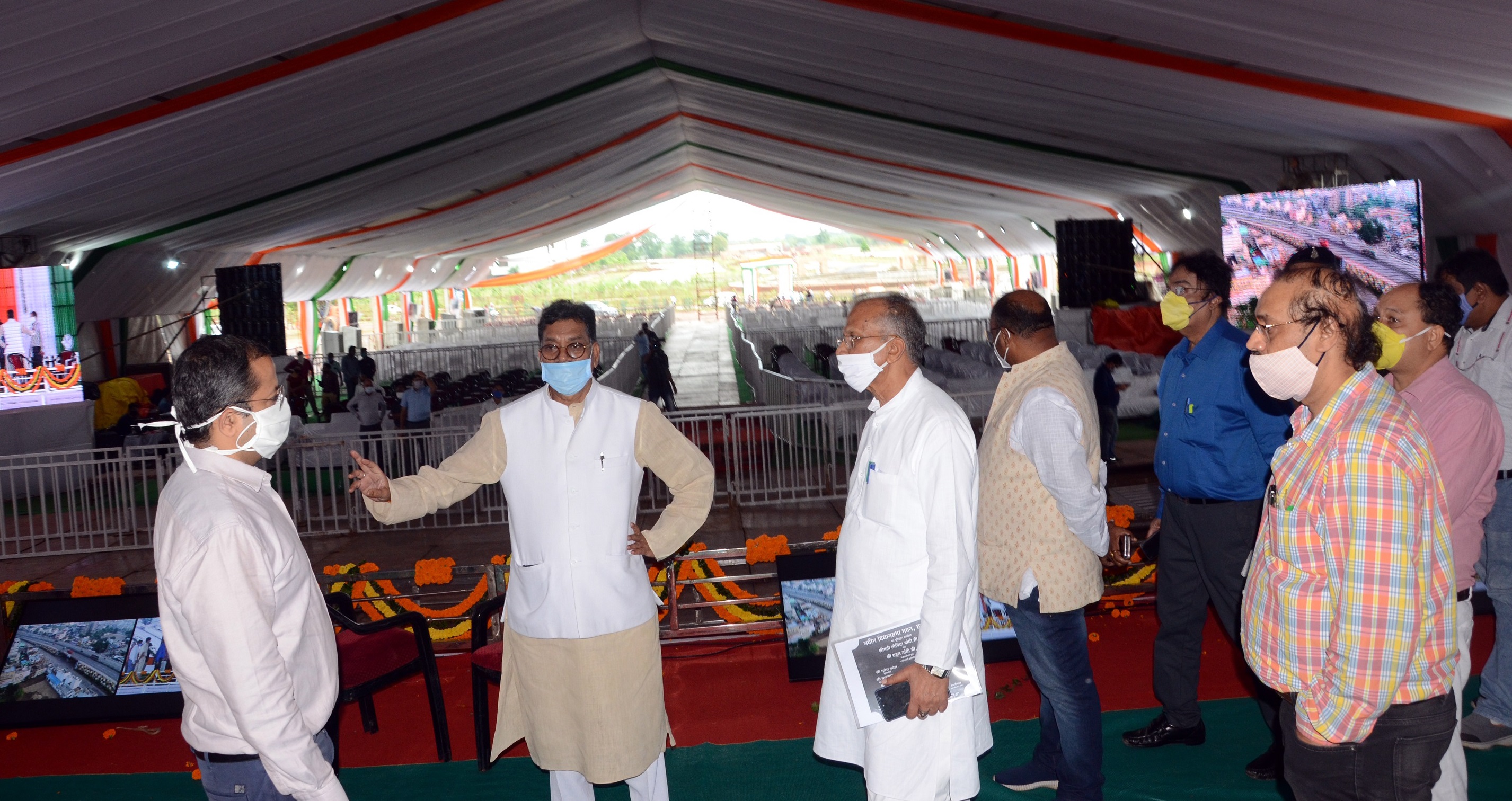 - विधान सभा अध्यक्ष डॉ. चरण दास महंत ने आज नवा रायपुर में दिनांक 29 अगस्त को नवीन विधान सभा भवन के भूमिपूजन कार्यक्रम स्थल का अवलोकन किया। डॉ. महंत ने भूमिपूजन कार्यक्रम स्थल में हो रही तैयारियों का जायजा लिया और लोकनिर्माण विभाग के अधिकारियों को आवश्यक निर्देश दिए। इस अवसर पर लोक निर्माण विभाग मंत्री श्री ताम्रध्वज साहू, विधान सभा उपाध्यक्ष श्री मनोज सिंह मंडावी एवं लोक निर्माण विभाग के अधिकारी भी उपस्थित थे।