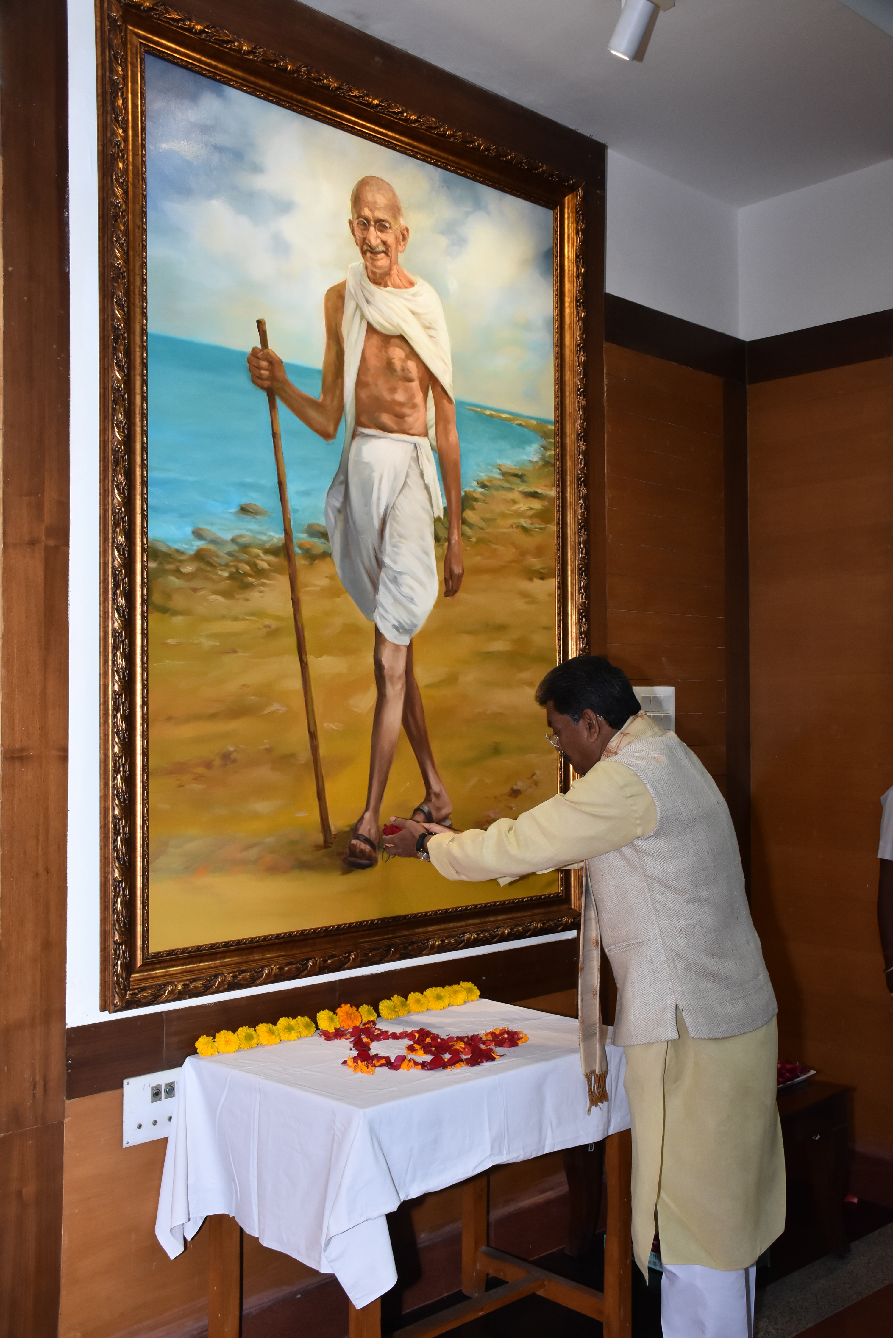- विधान सभा के सेन्ट्रल हॉल में “राष्ट्रपिता महात्मा गांधी” के तैल चित्र को दी गयी पुष्पांजलि - गांधी जी की प्रतिमा के समक्ष शहीदों की स्मृति में रखा गया दो मिनट का मौन - विधान सभा अध्यक्ष डॉ. चरणदास महंत भी हुए सम्मिलित |