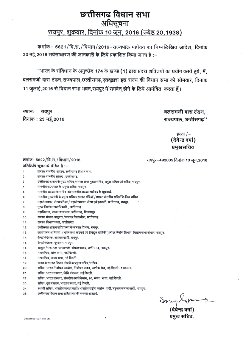 चतुर्थ विधानसभा का अष्टम सत्र - जुलाई 2016