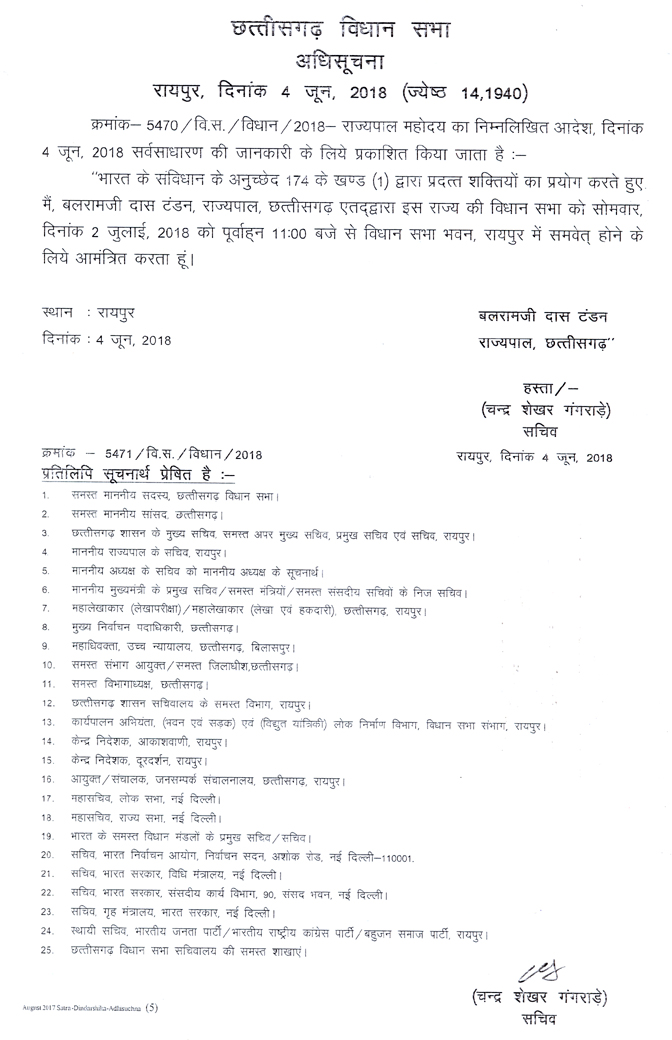 चतुर्थ विधानसभा का सोलहवां सत्र - जुलाई 2018
