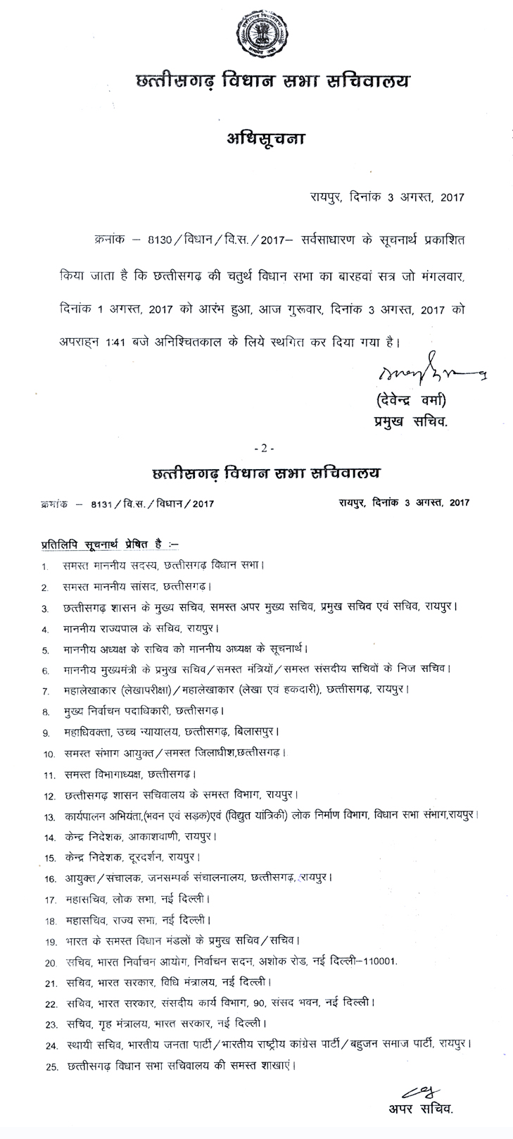 चतुर्थ विधानसभा का बारहवाँ सत्र - अगस्त 2017