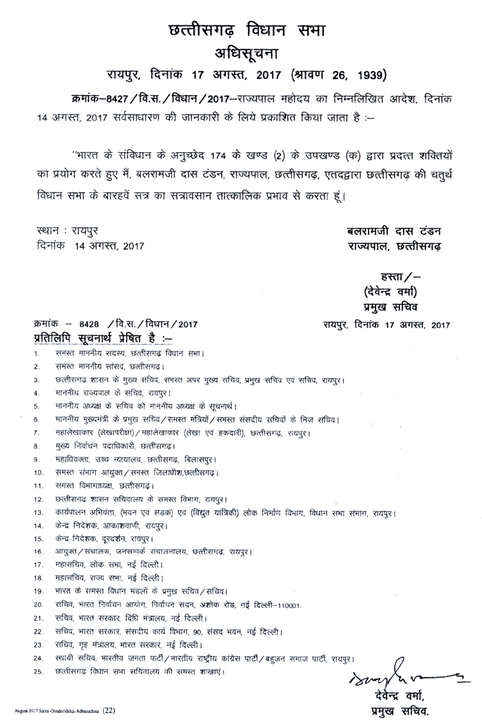 चतुर्थ विधानसभा का बारहवाँ सत्र - अगस्त 2017